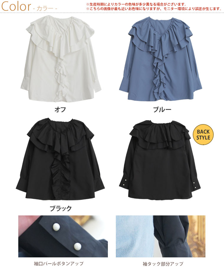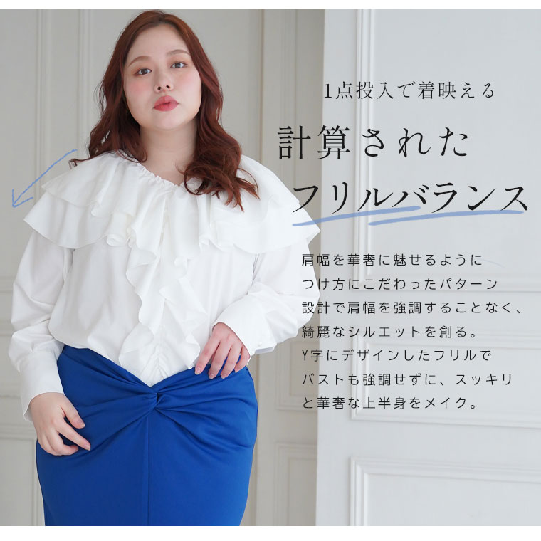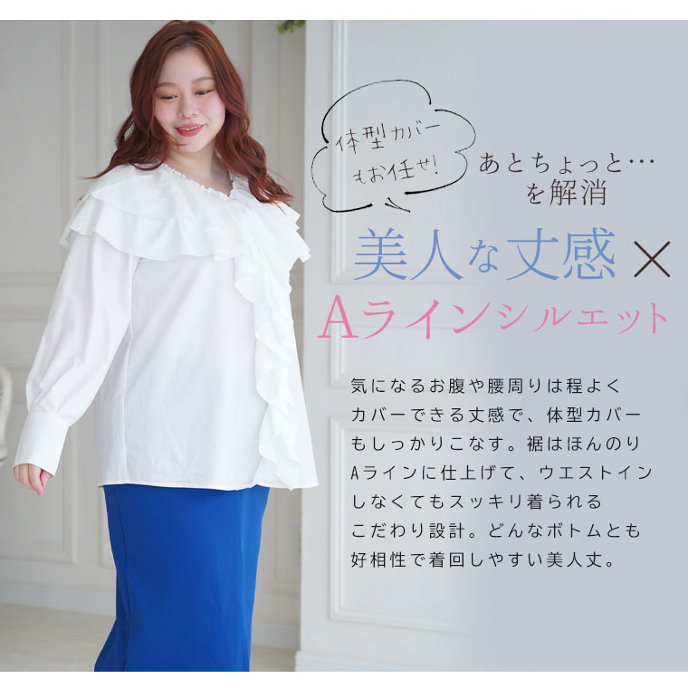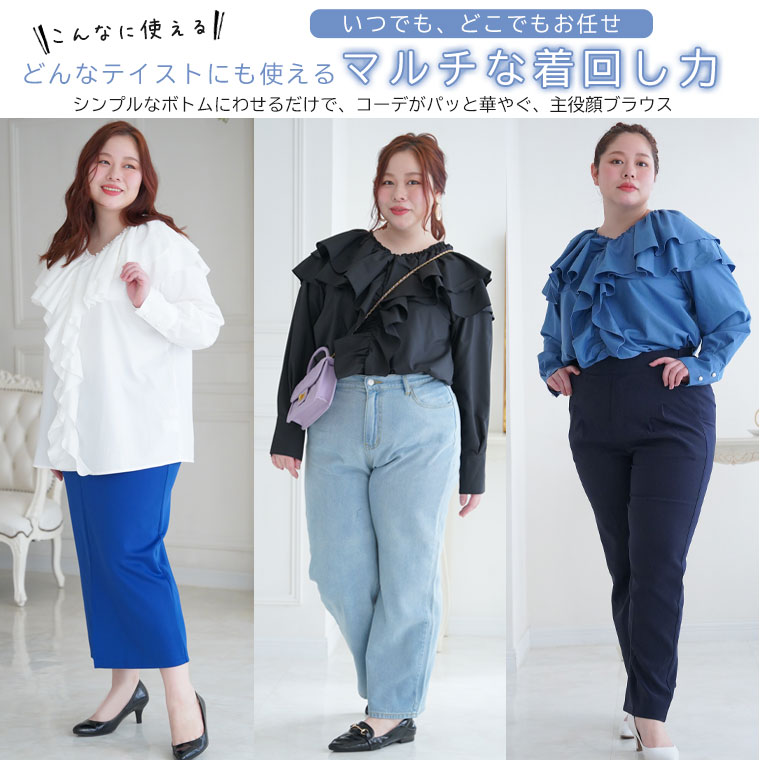 ボリュームフリルがエレガントな主役ブラウス INでもOUTでもサマになる