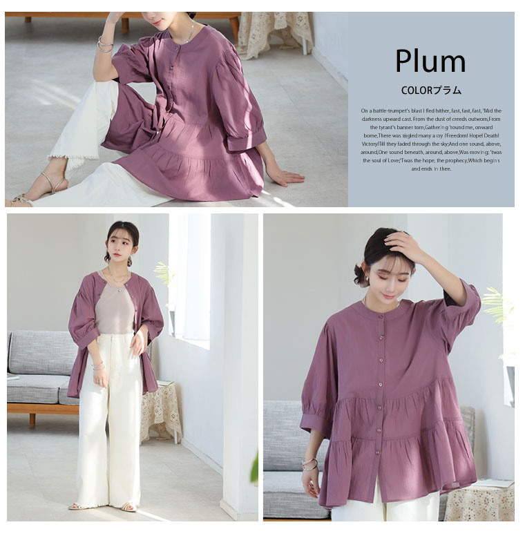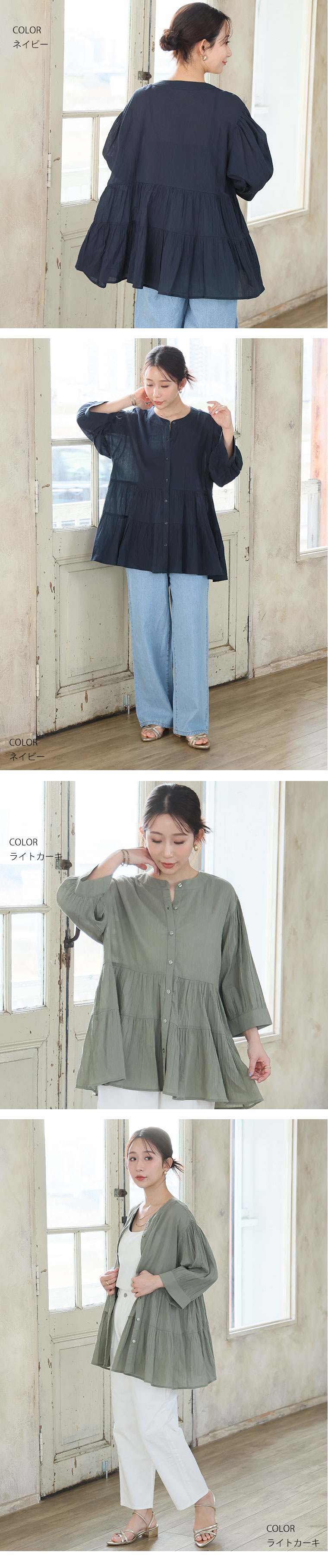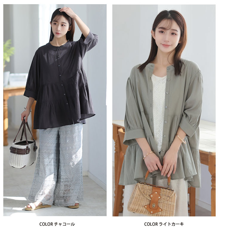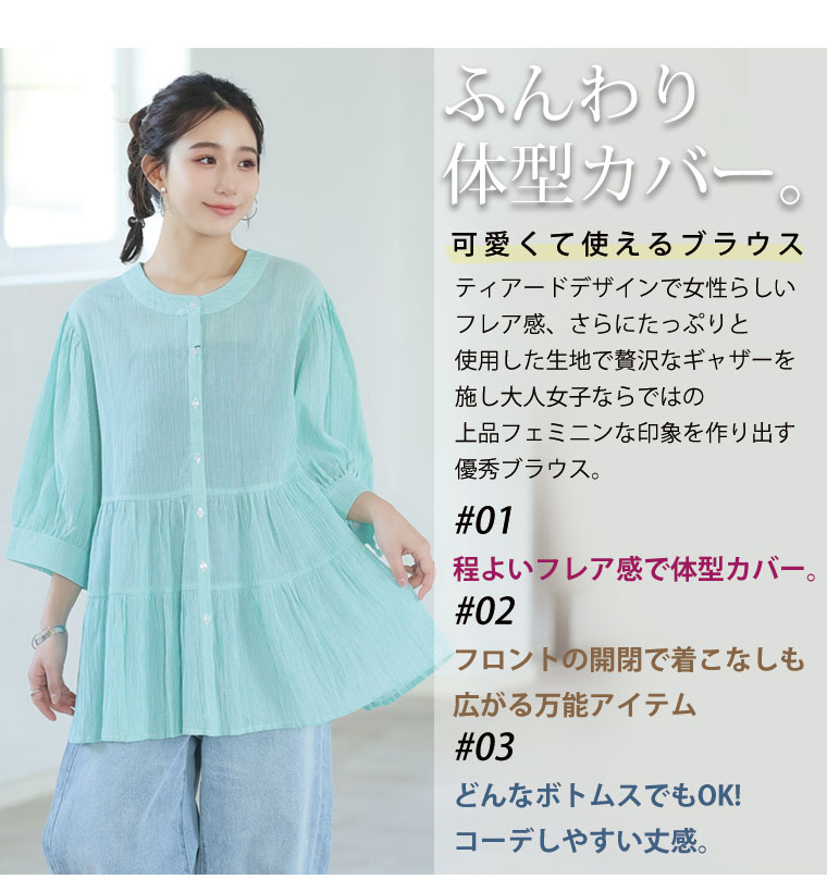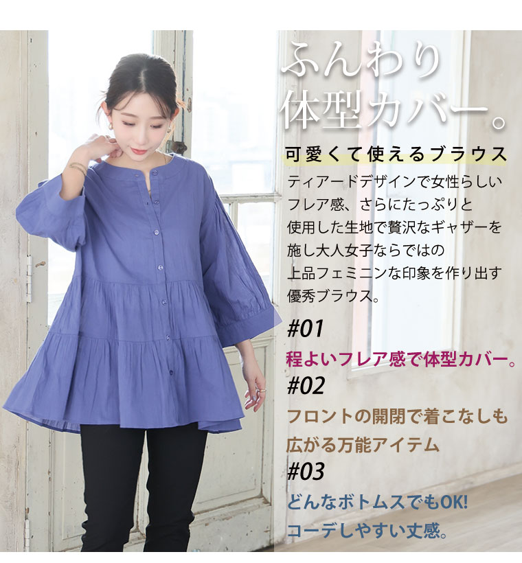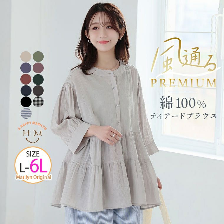 【風通るプレミアム】綿100%ティアードブラウス
