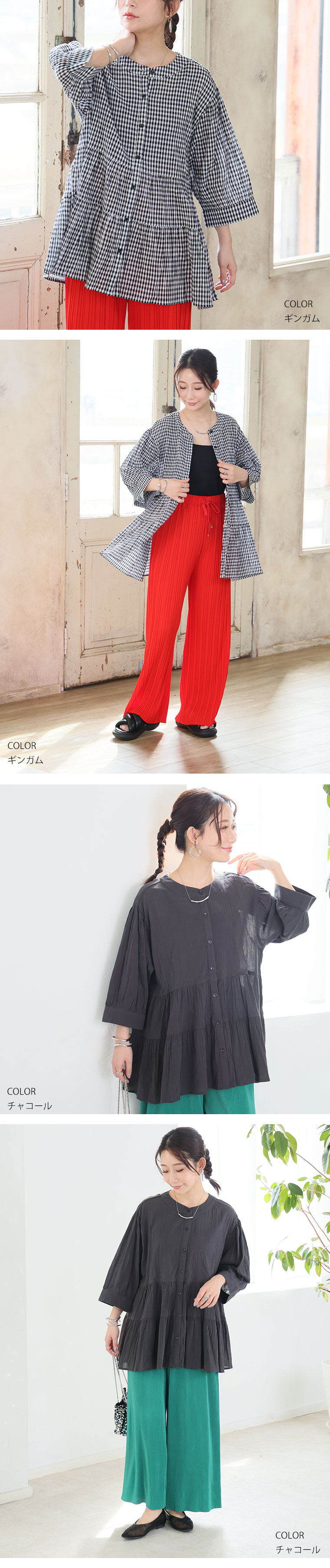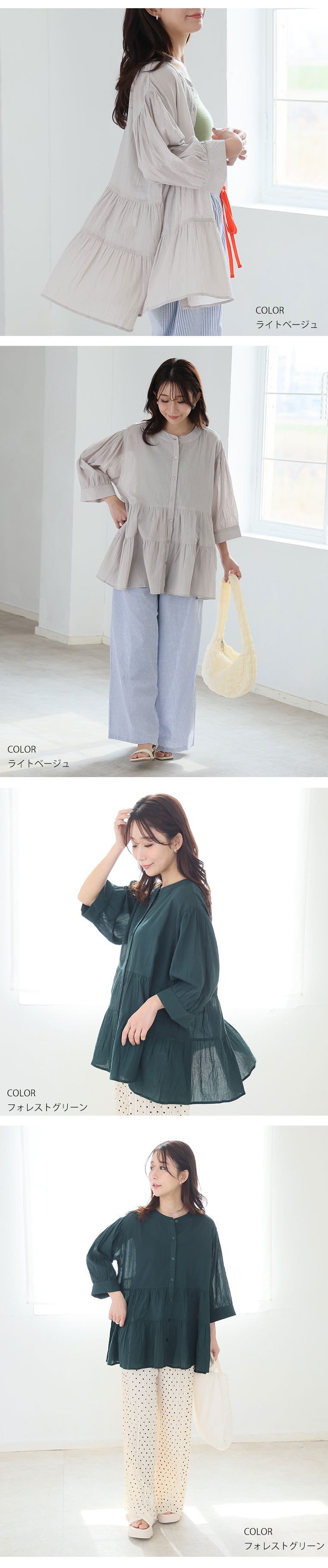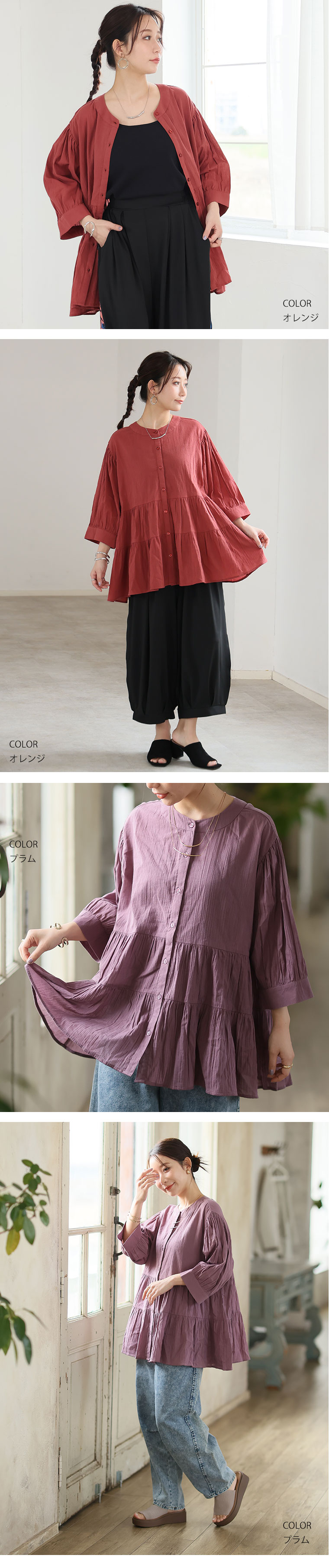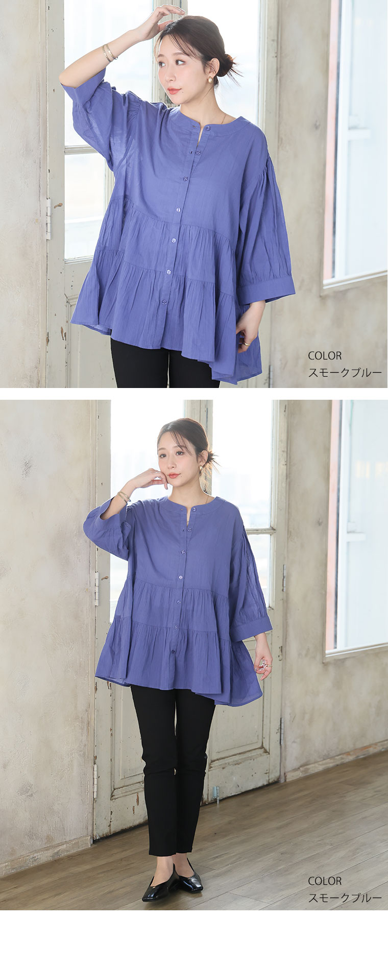 【風通るプレミアム】綿100%ティアードブラウス