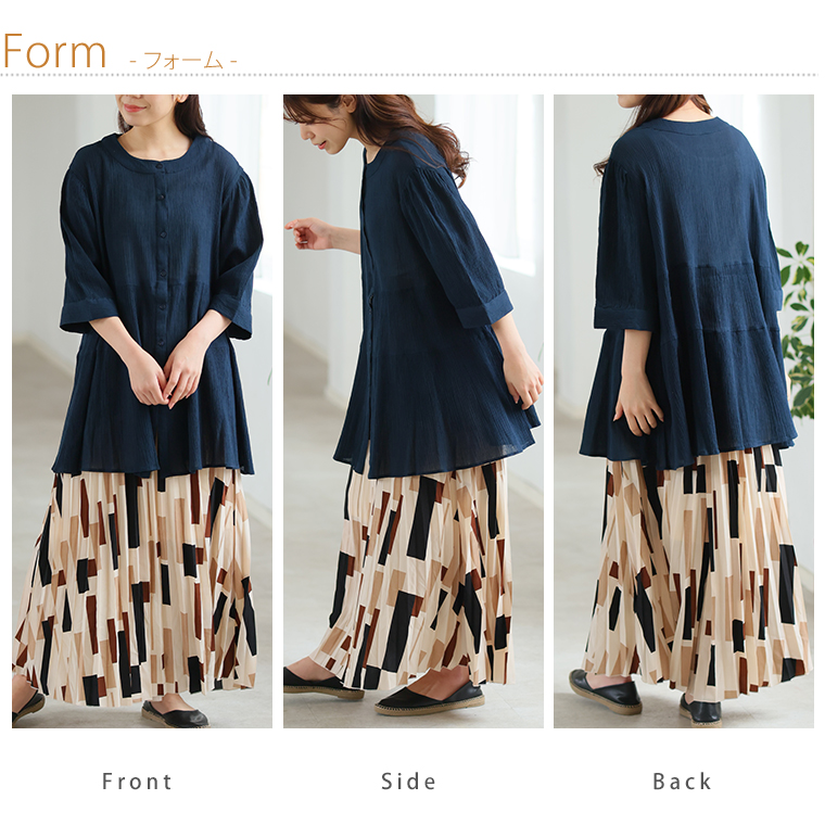 程よいフレア感で体型カバー。二の腕からヒジまでカバーする