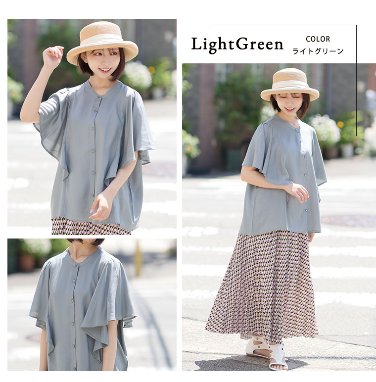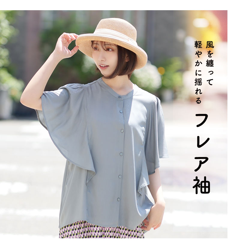 ふんわりフレア袖で二の腕しっかりカバー。冷感ブラウス