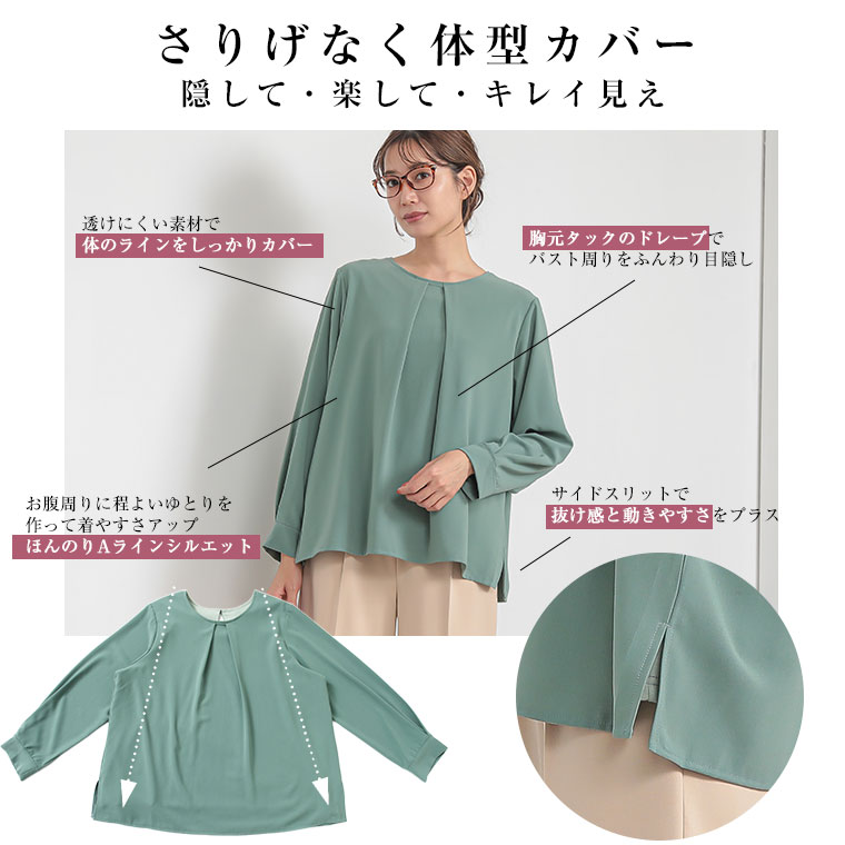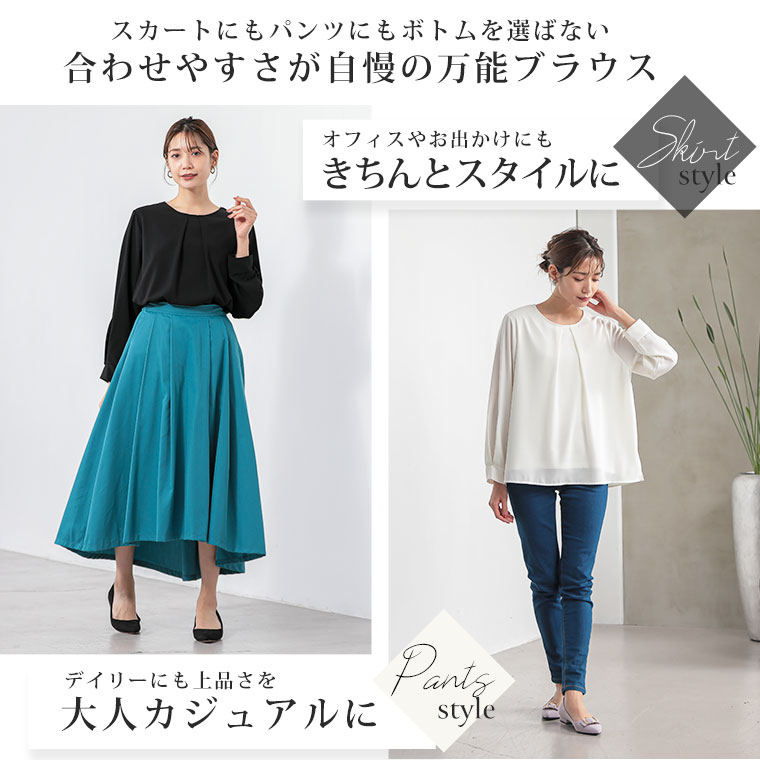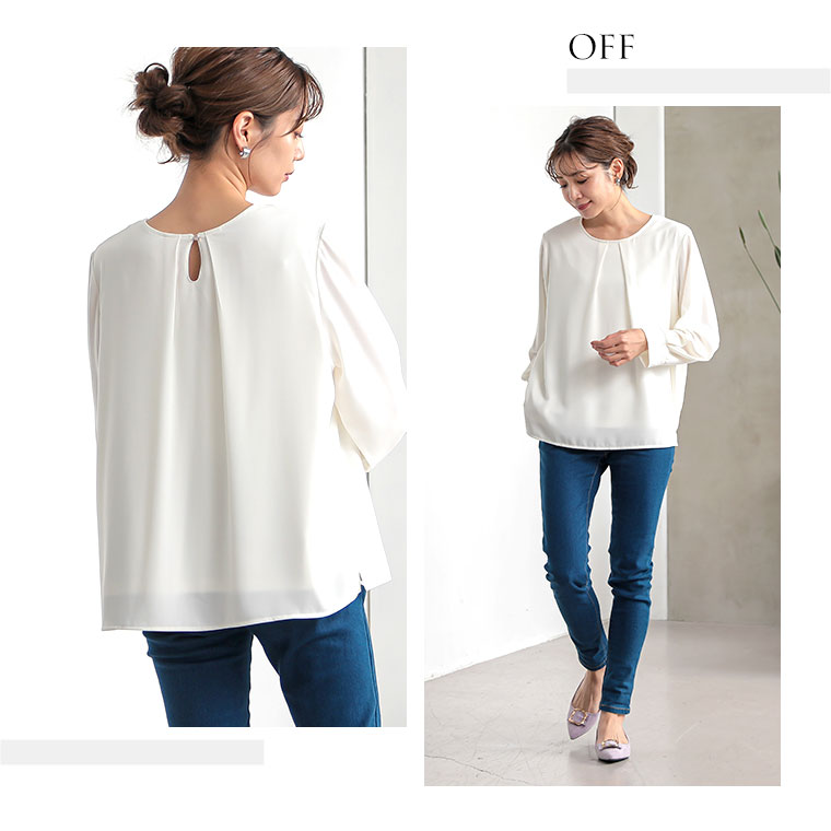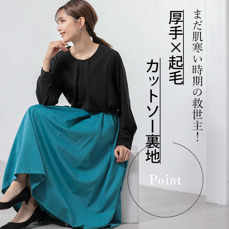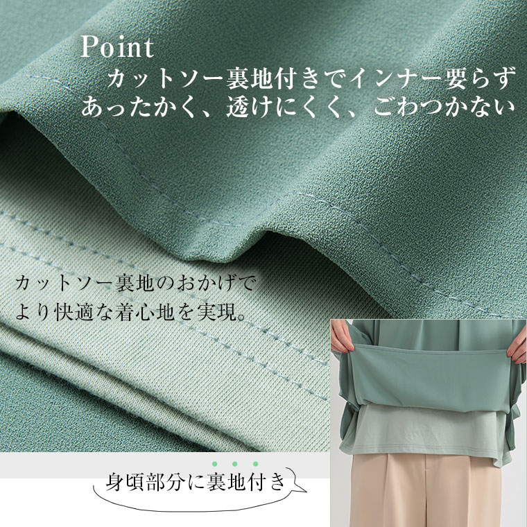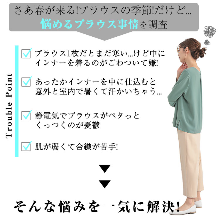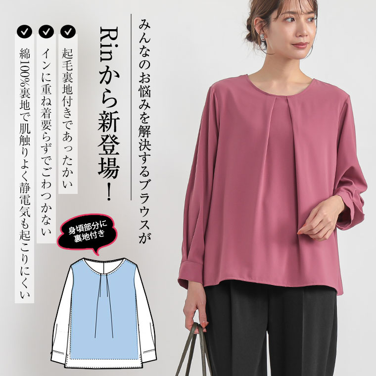 こっそりあったかインナー要らずの綿100起毛裏地付タックブラウス