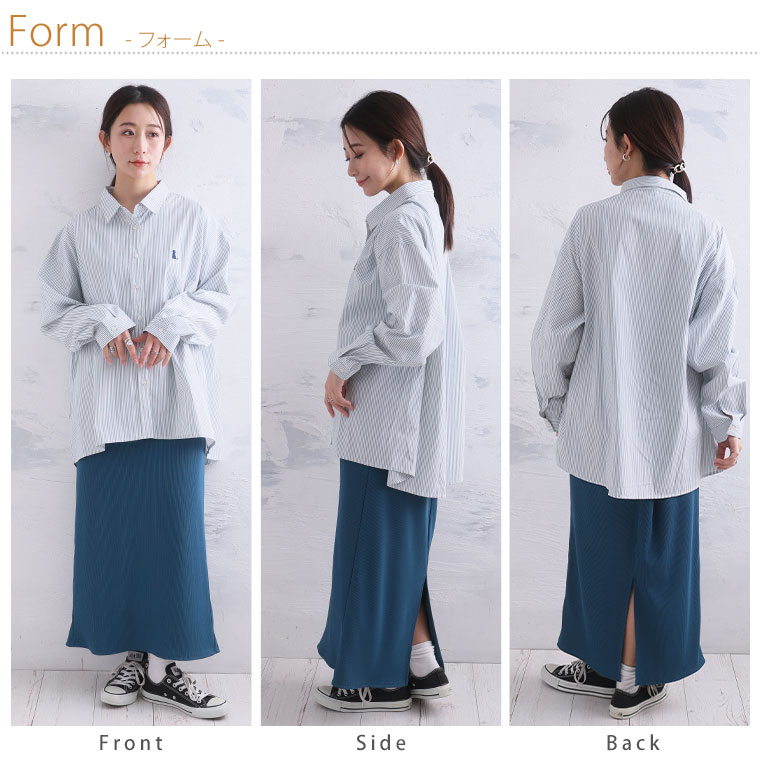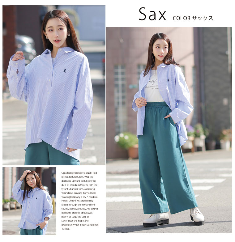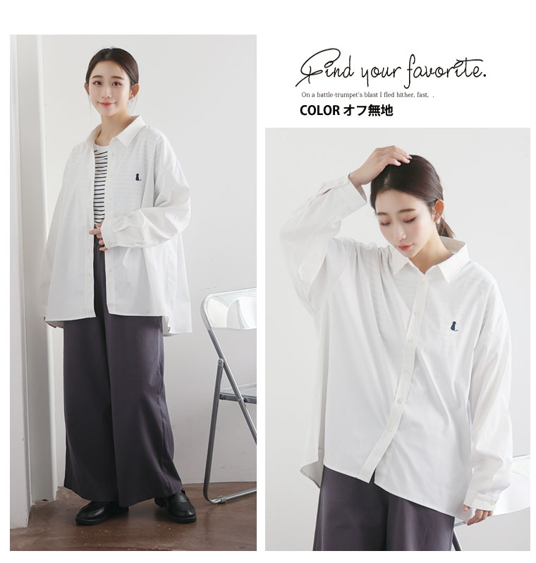 6. 大きいサイズ ハピにゃん刺繍・颯爽と春めく ゆるサイズの カジュアル シャツ