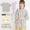 さらっとした肌触りの麻ライクスラブ素材。ストライプの縦見えの効果で着痩せしてスッキリ見せ。