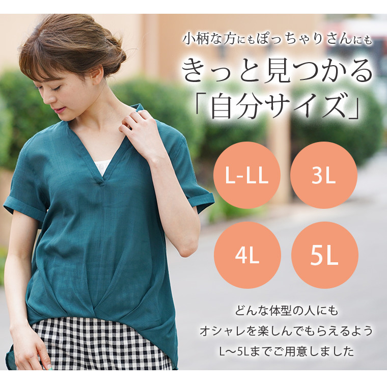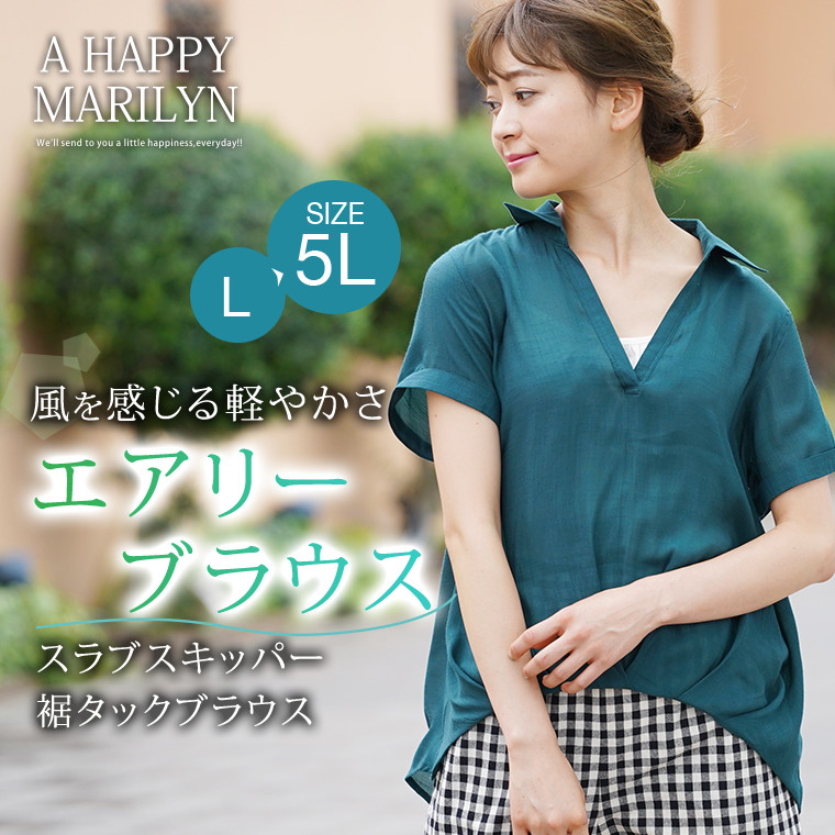 大きいサイズ RTスラブ スキッパー 裾タック ブラウス