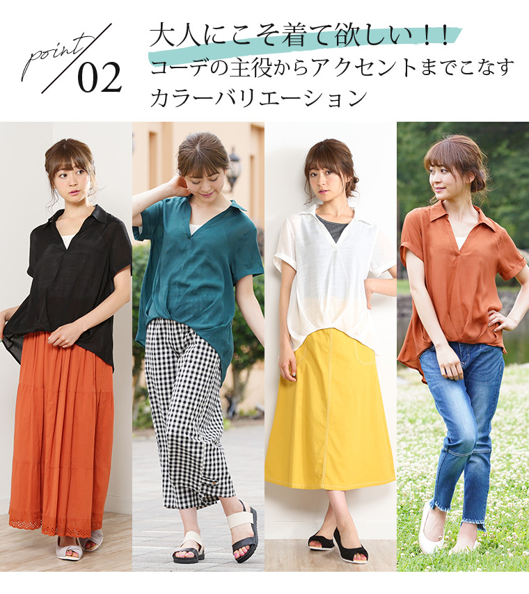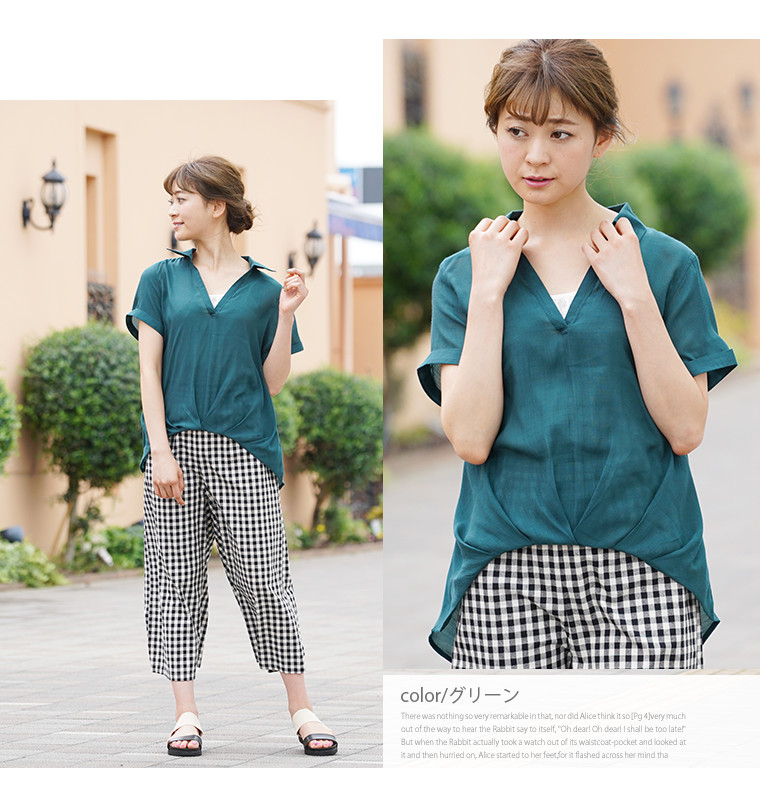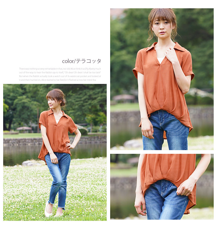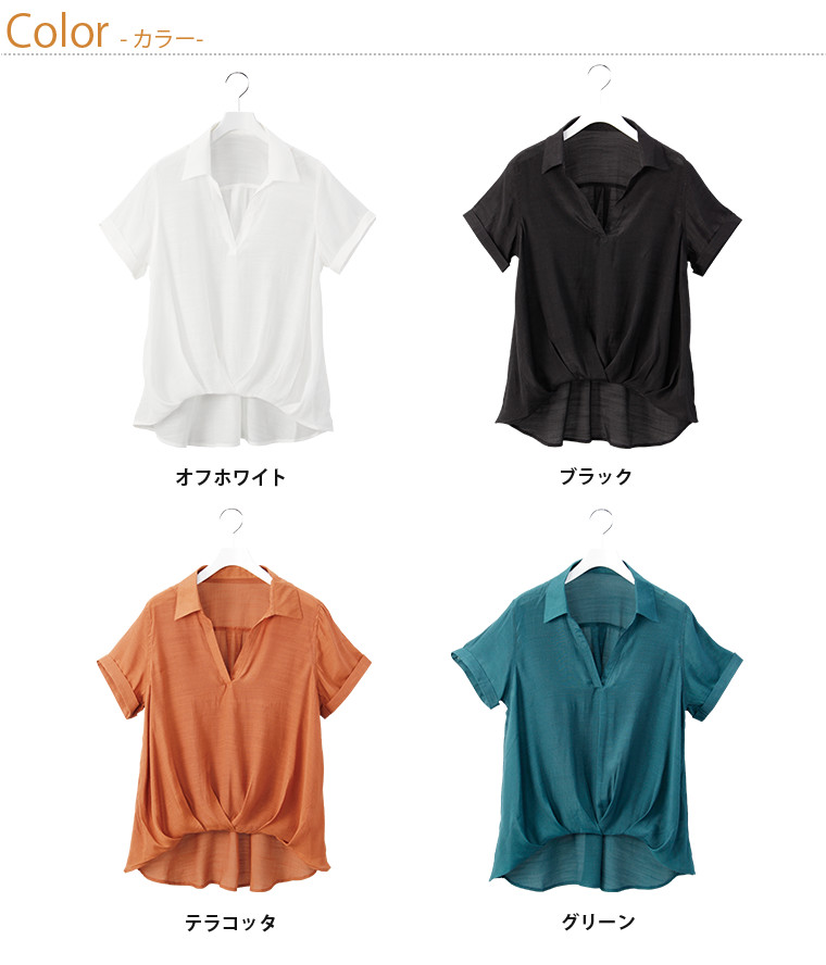 4. 大きいサイズ RTスラブ スキッパー 裾タック ブラウス