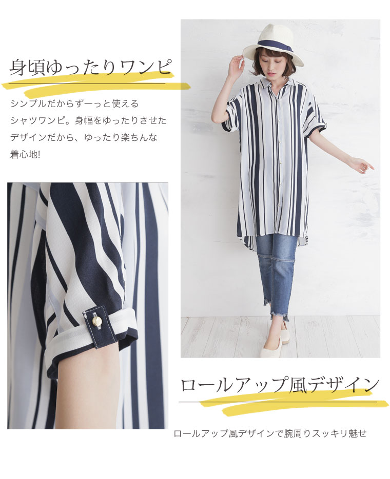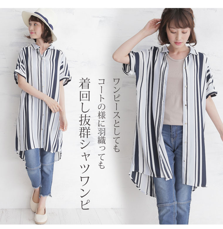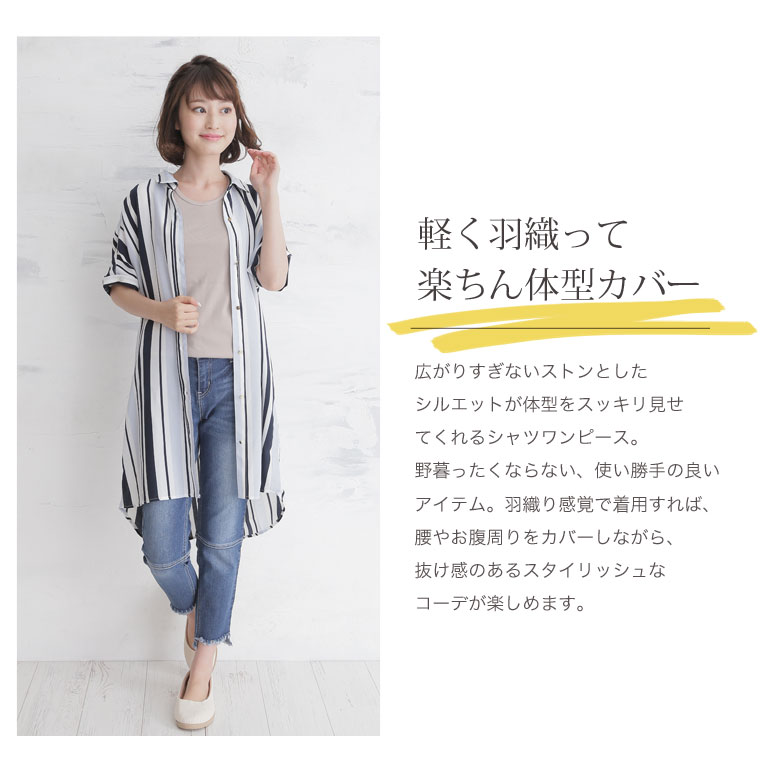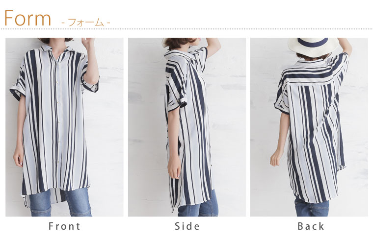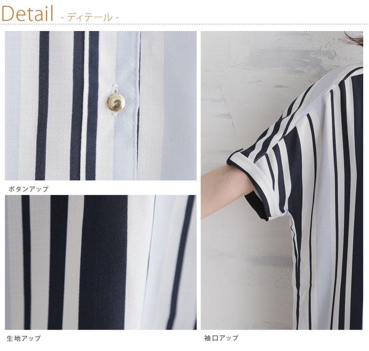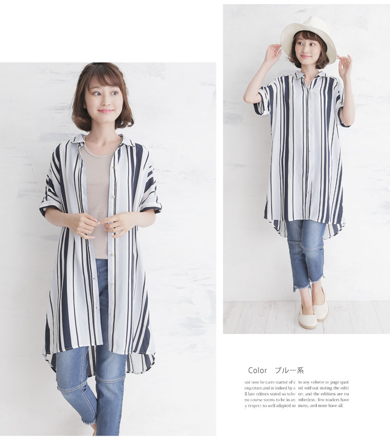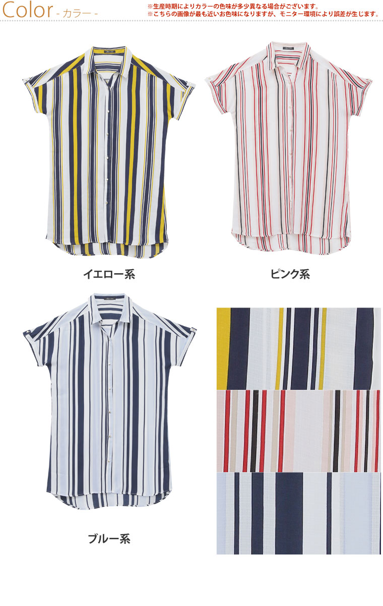 華やかなマルチストライプがアクセント。ゆったりシャツブラウス