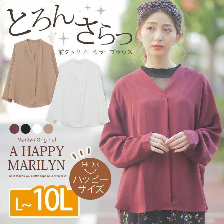 ドレープを生み出すタック入りデザイン。ゆったりワイドなノーカラーブラウス