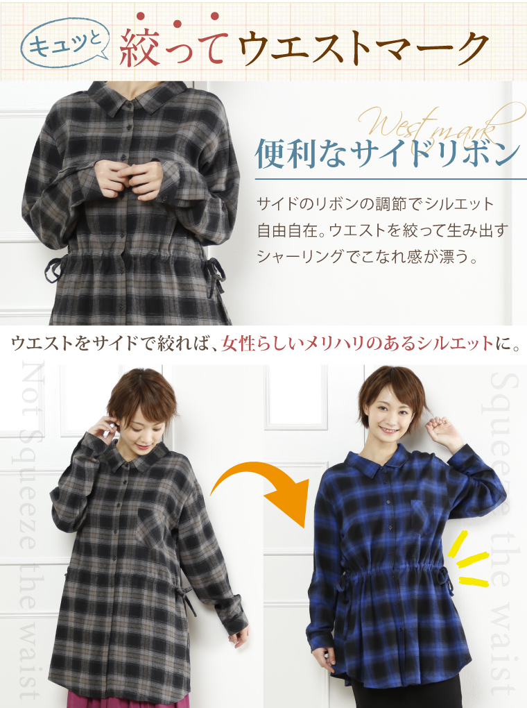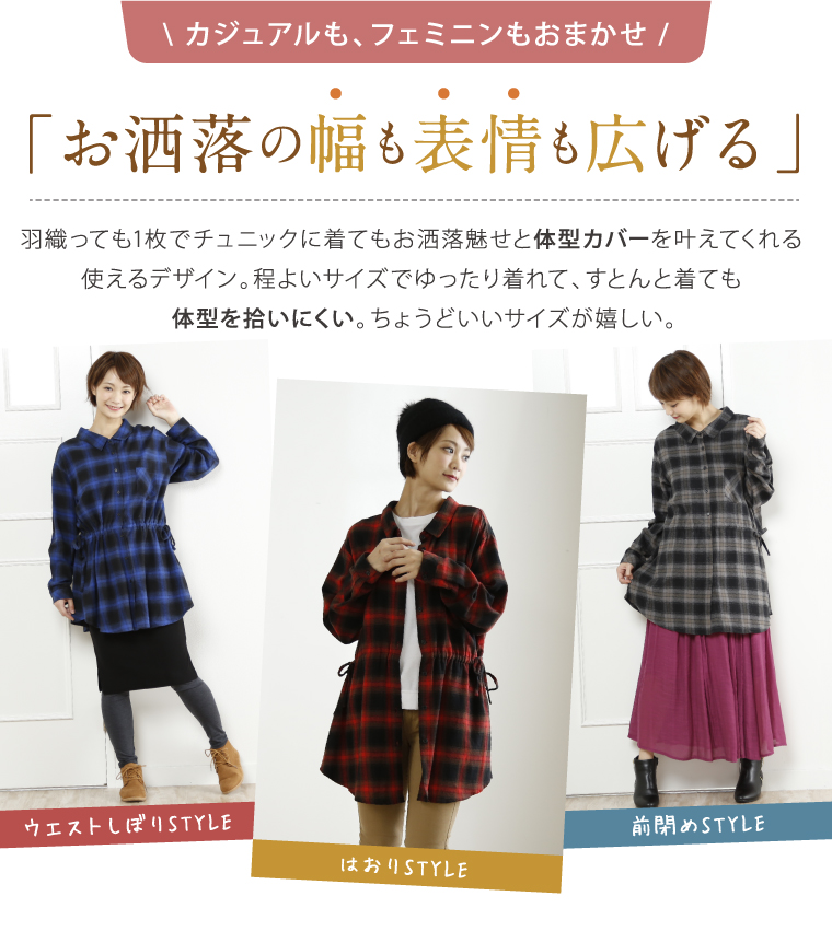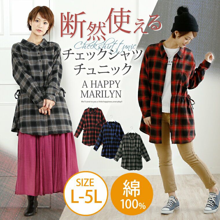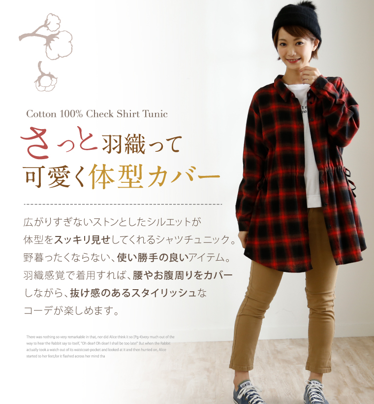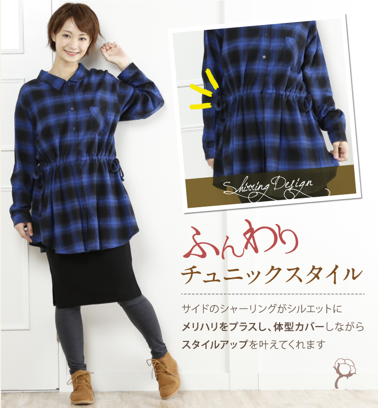 コットン100%の優しい肌触りが嬉しい♪季節感のあるチェックシャツチュニック