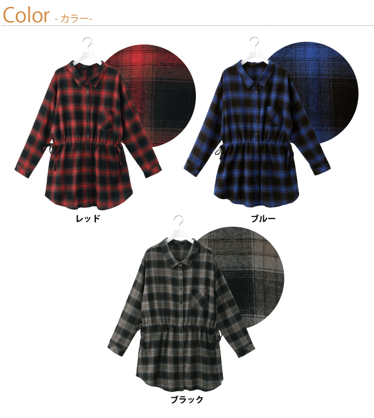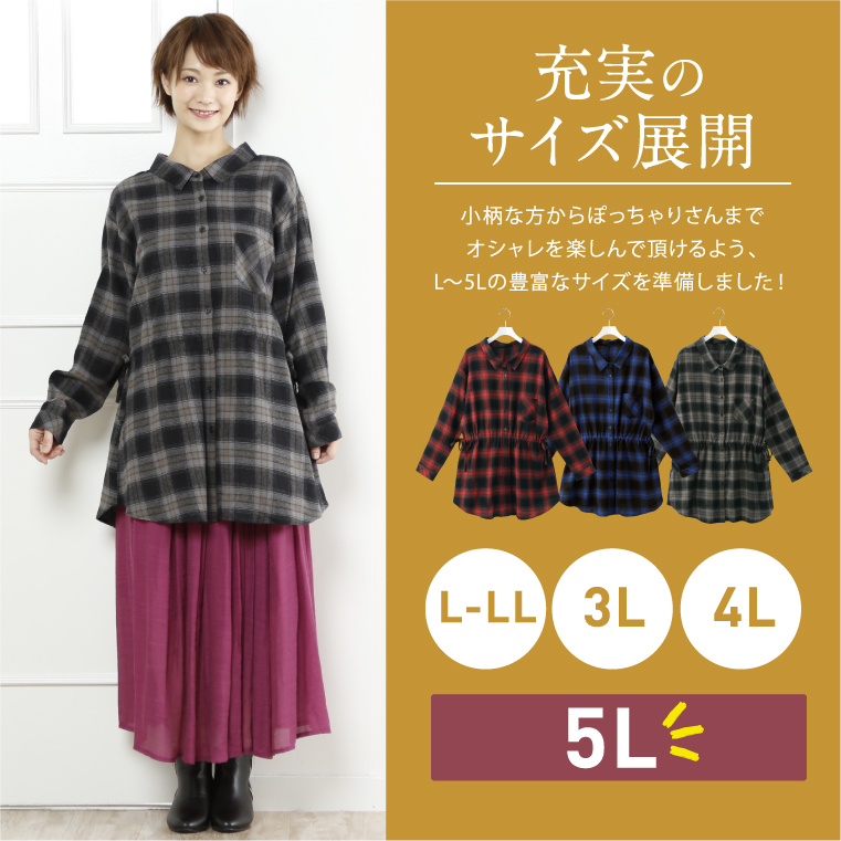 シャツ チュニック ブラウス トップス LL 3L 4L 5L 秋 秋物 秋服 冬 冬物 冬服 ぽっちゃり ゆったり かわいい おしゃれ カジュアル 体型カバー コットン100% 長袖 チェック シャツチュニック