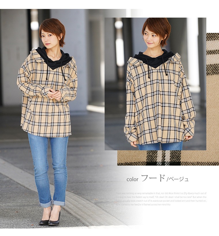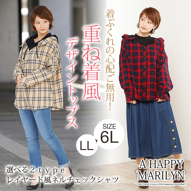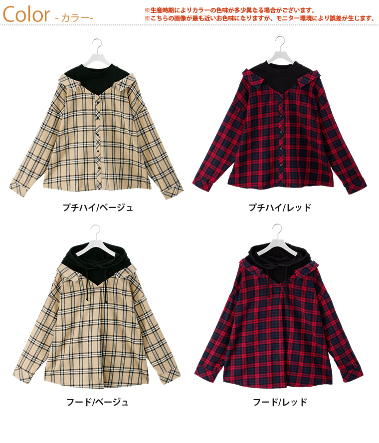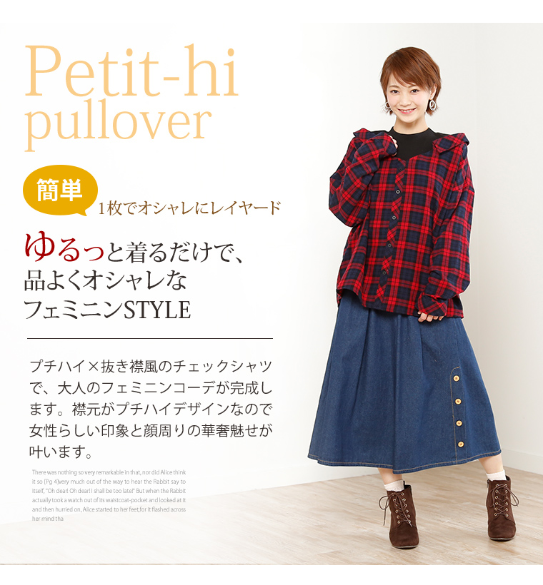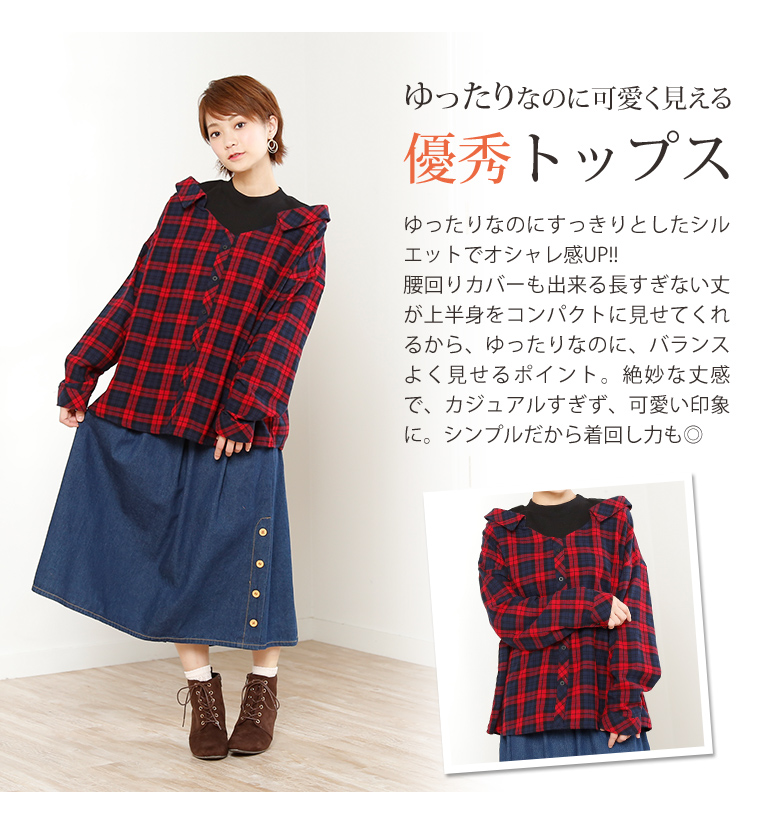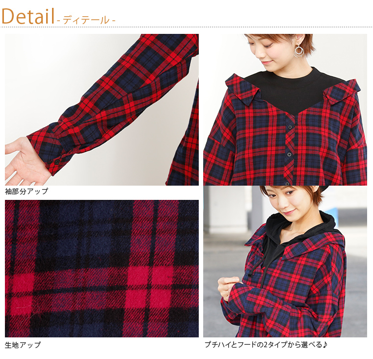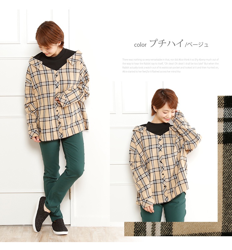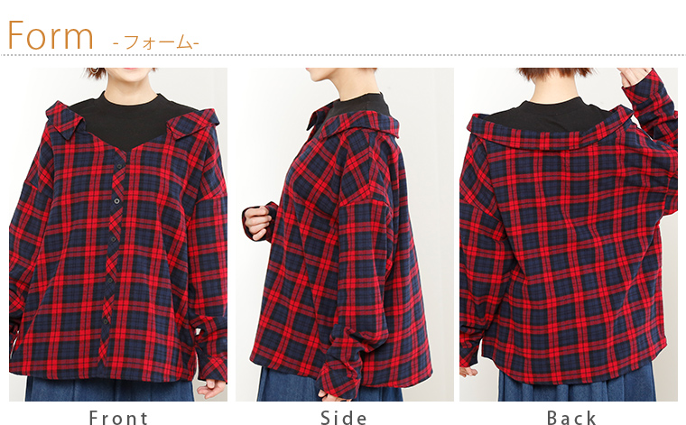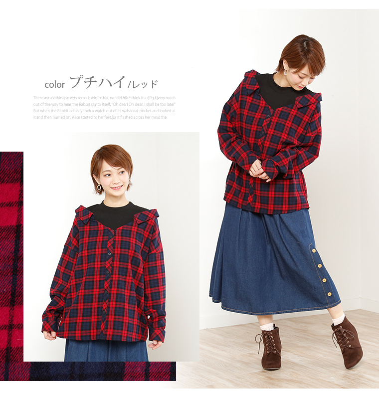 ヌキ襟風のシャツデザインが大人っぽい。レイヤード風ネルチェックシャツ