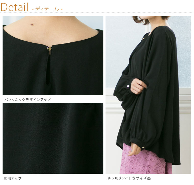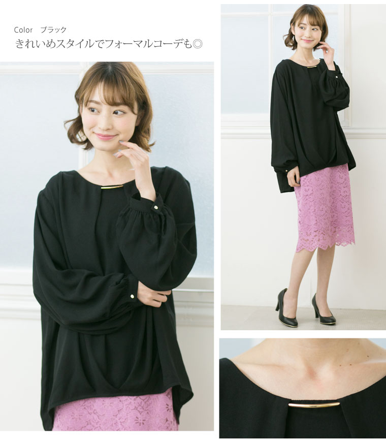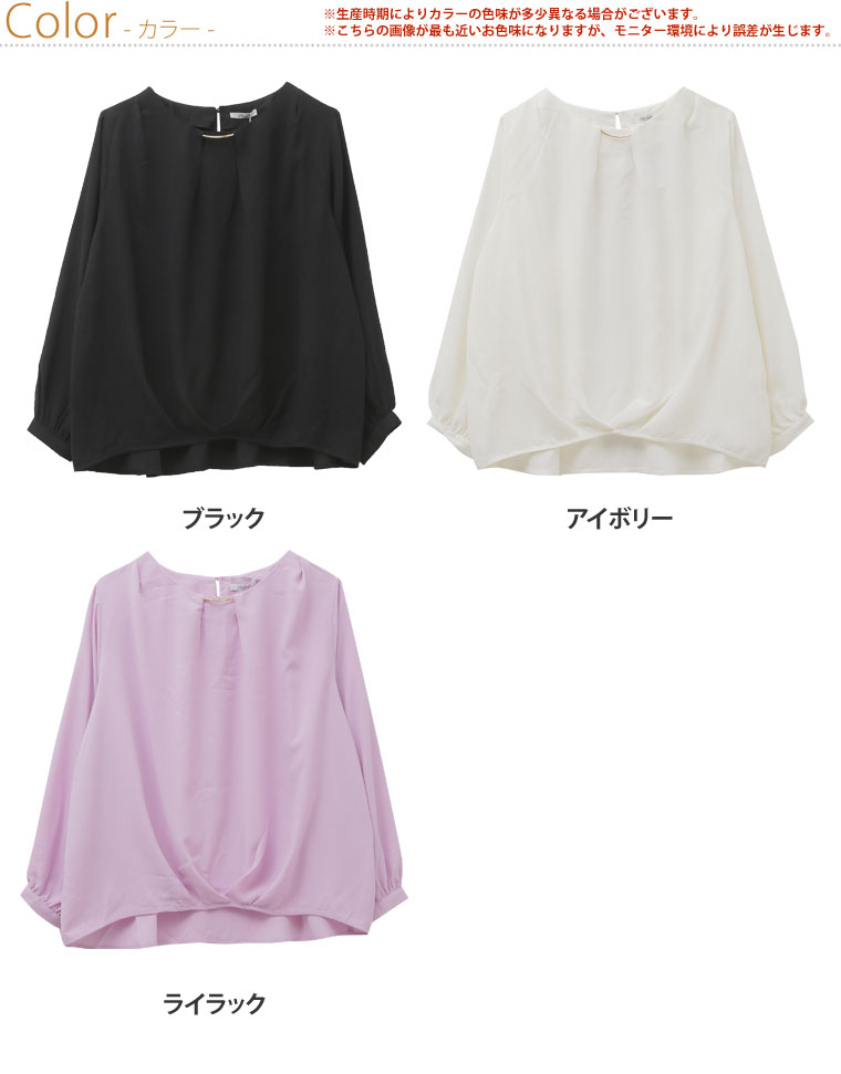 襟元メタルパーツがアクセント。華やかなデザインのジョーゼットタックブラウス