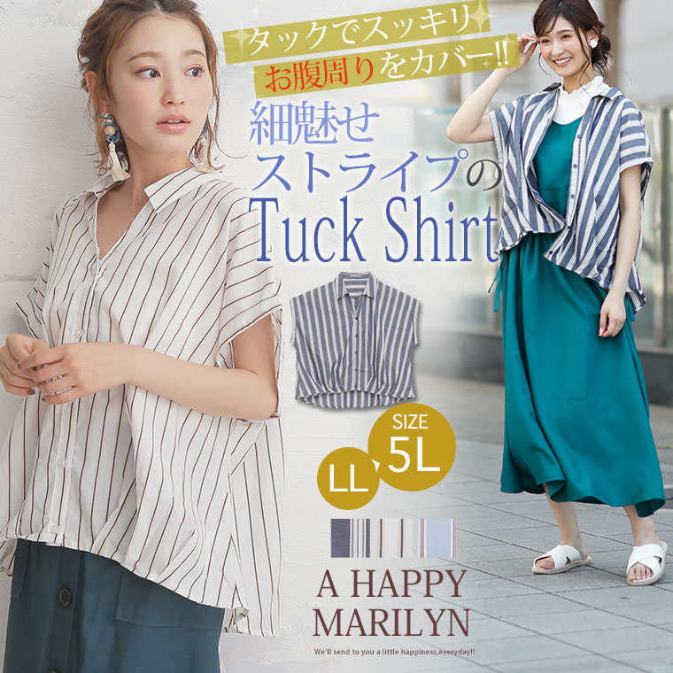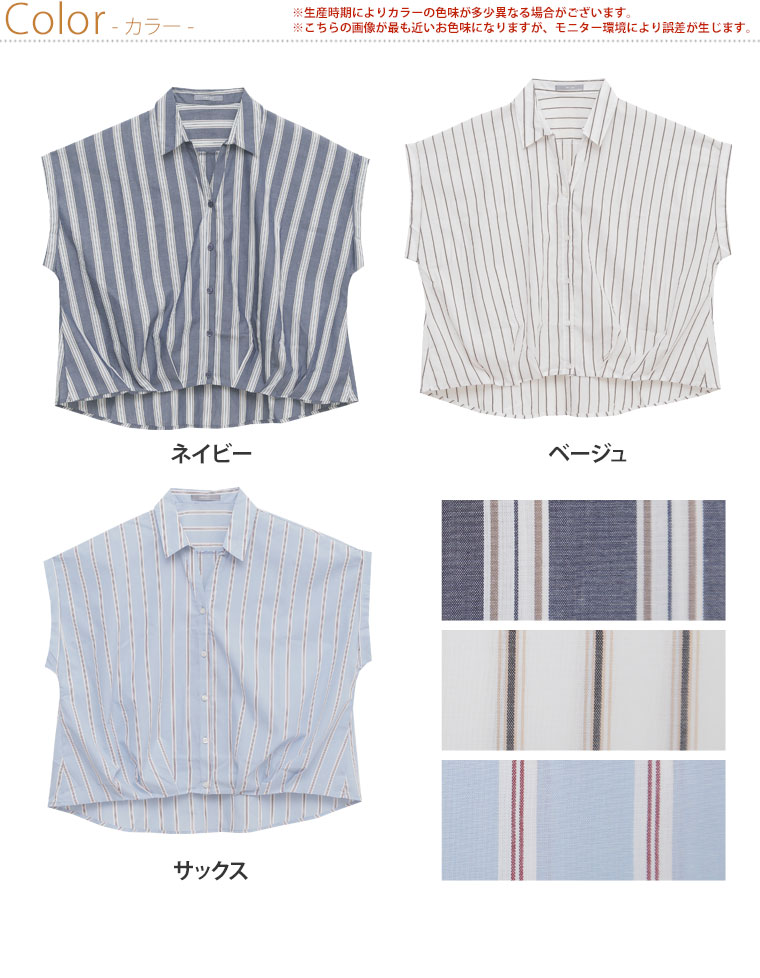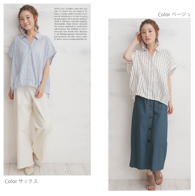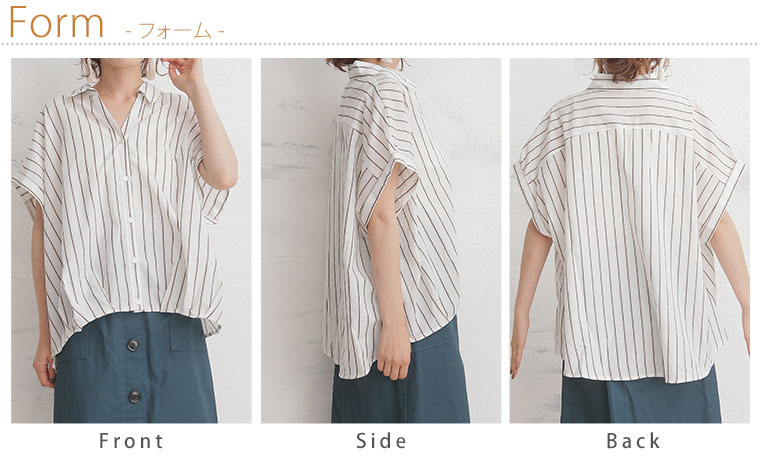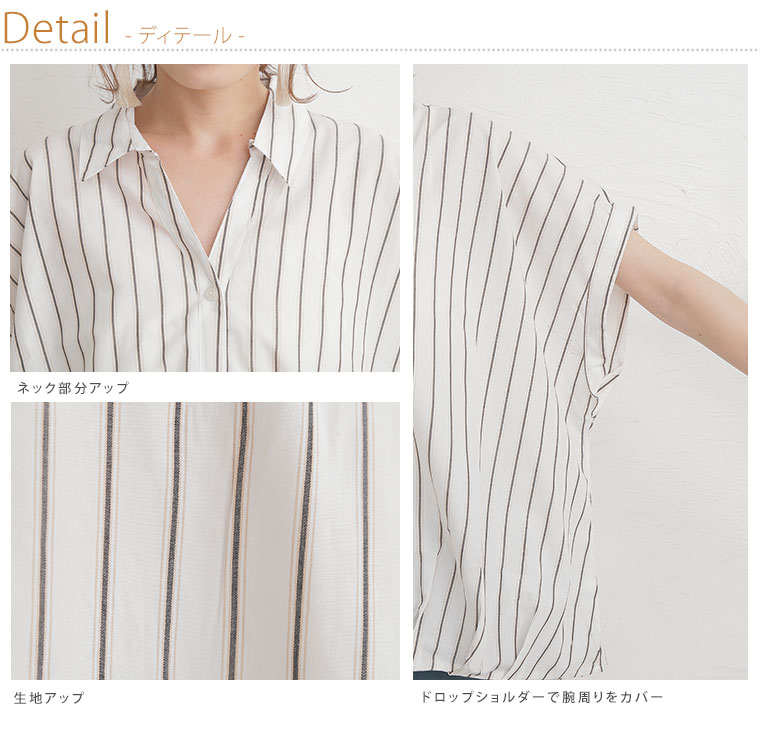 すっきり着痩せ効果のあるストライプ前開きフロントタックスキッパーシャツ