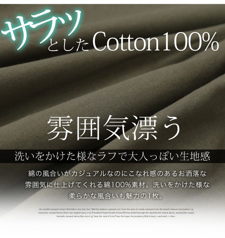 柔らかな綿100%生地でナチュラルコーデの完成!!使いやすい2カラーをご用意しました。