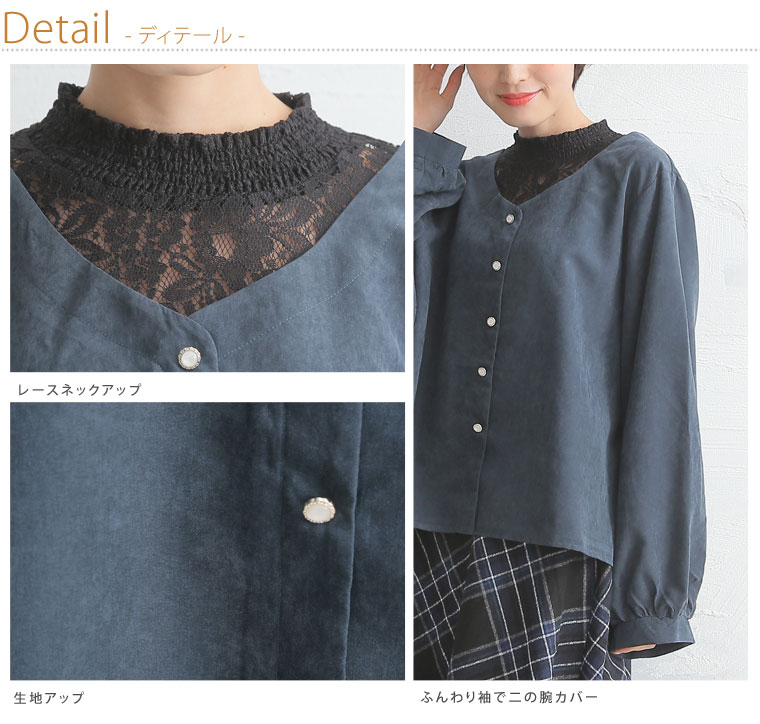 エステルピーチ生地でしっとりと着こなす。レイヤード風ブラウス