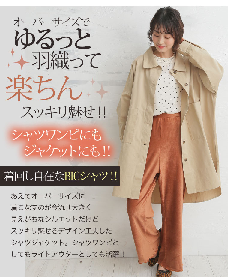 ゆったりサイズでトレンドスタイルの完成!!綿ツイルBIGシャツ