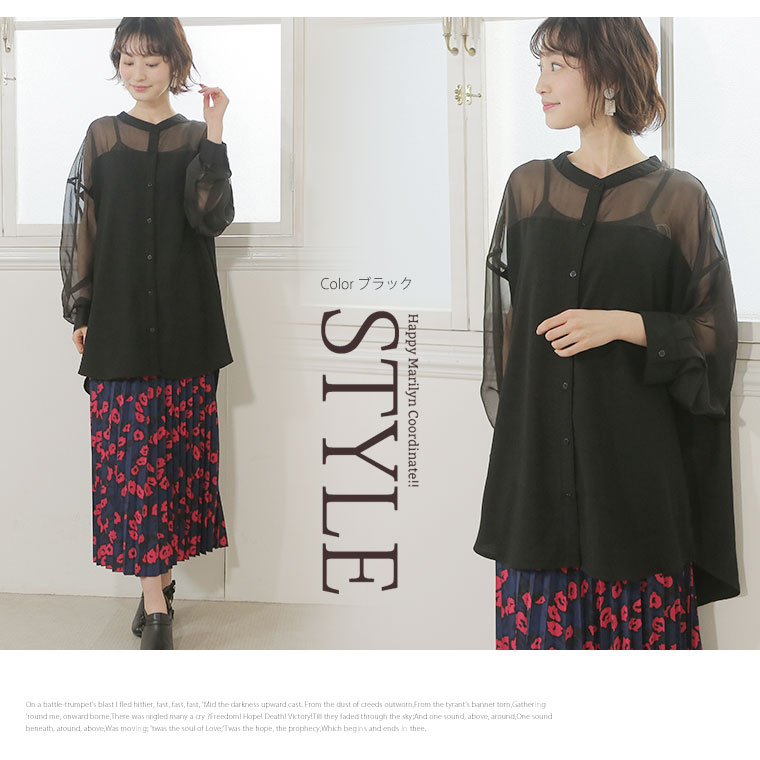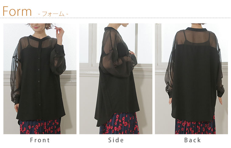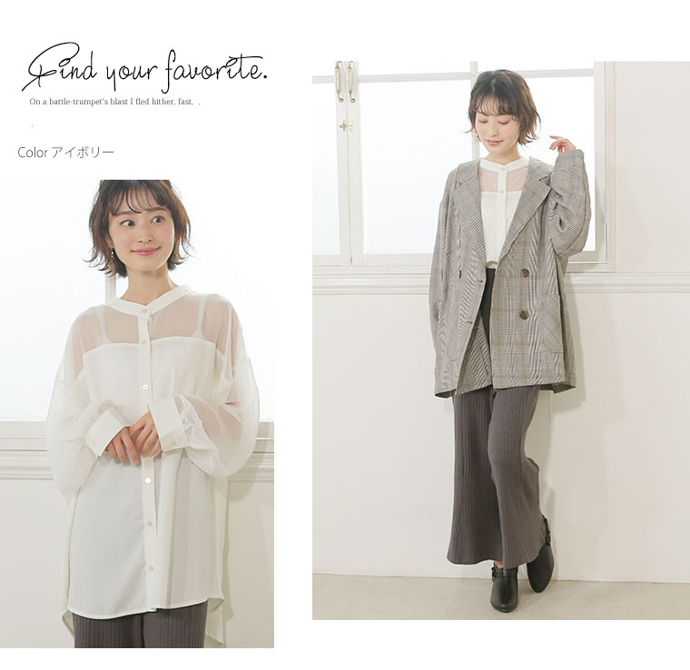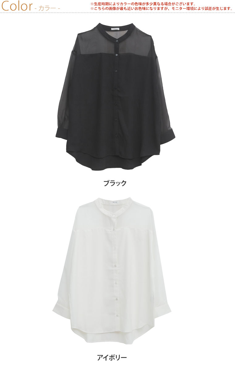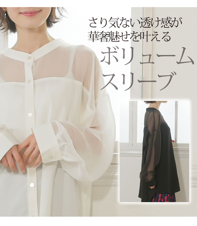 程よい透け感で華やかな着こなしに。華奢見せバンドカラーシアーシャツ