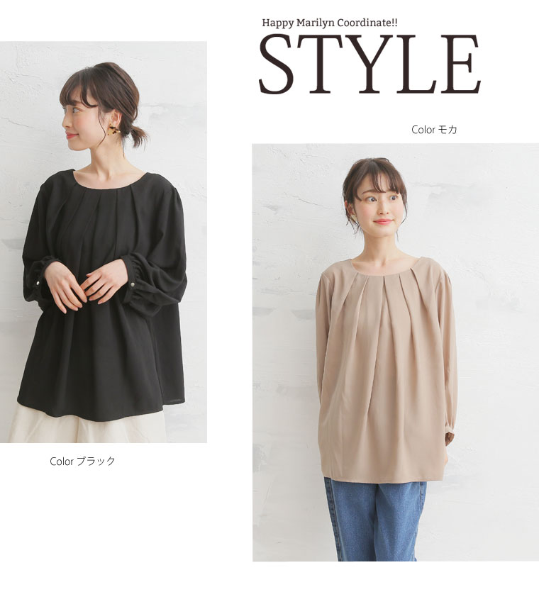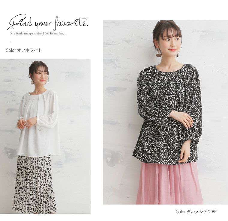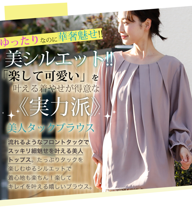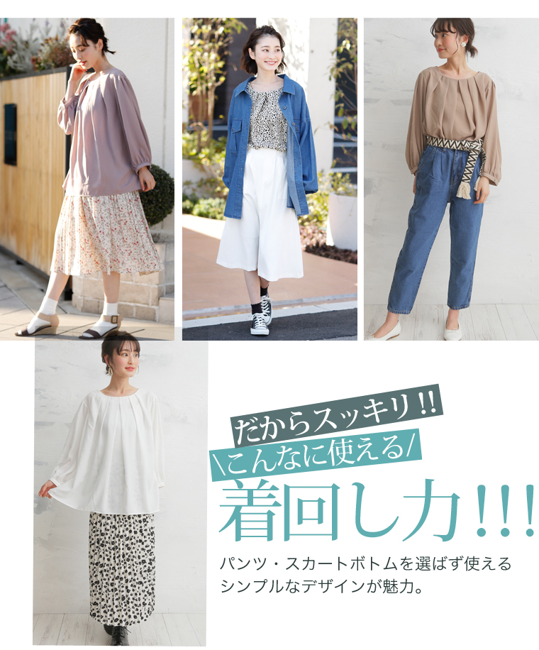 無地と柄から選べる!華奢魅せフロントタックブラウス