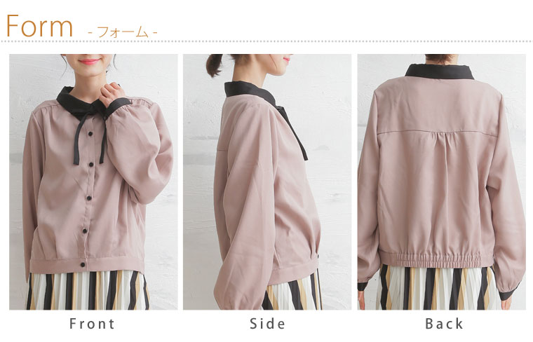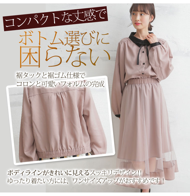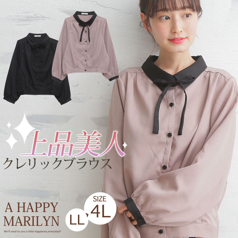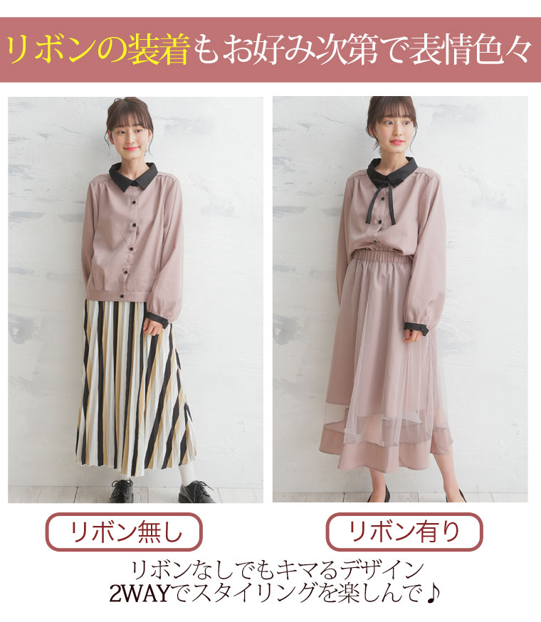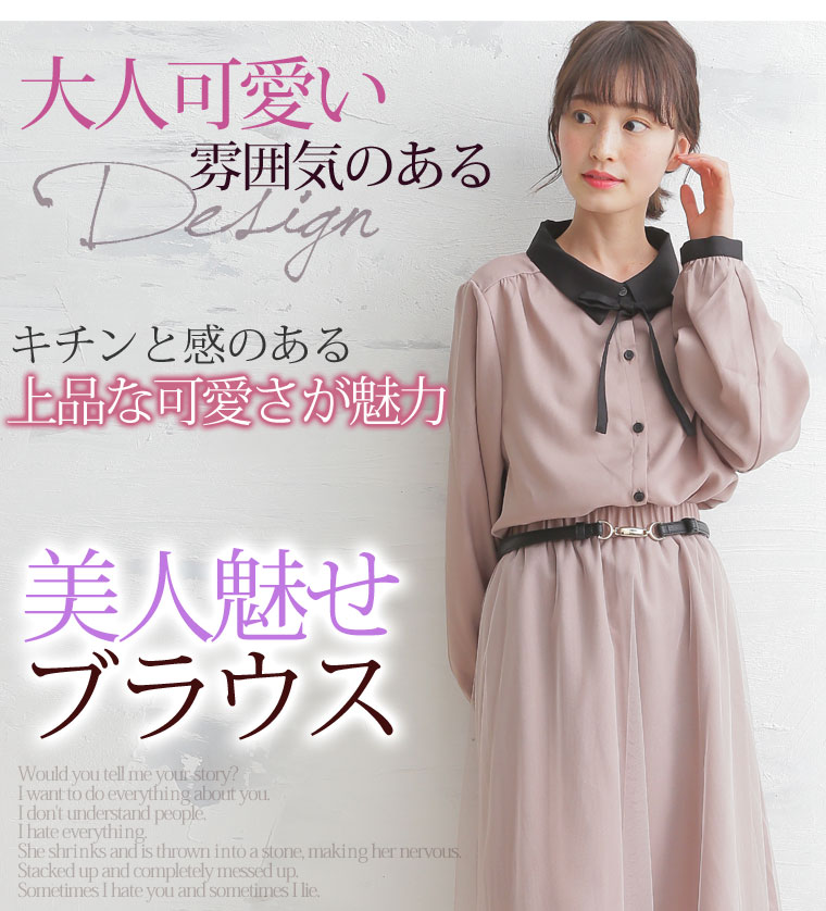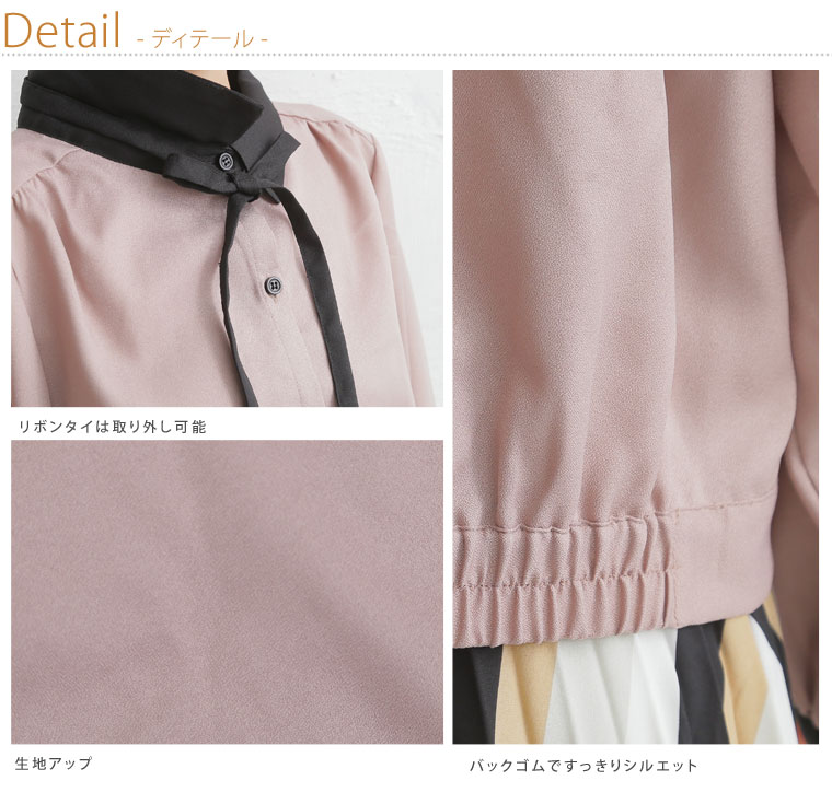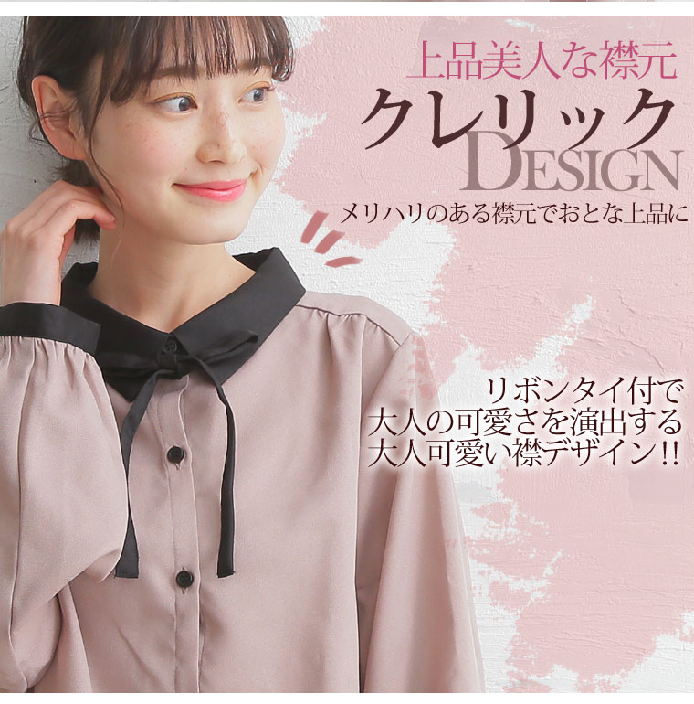 美人ジョーゼットリボンタイ付クレリックブラウス