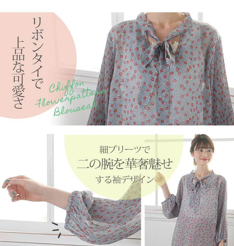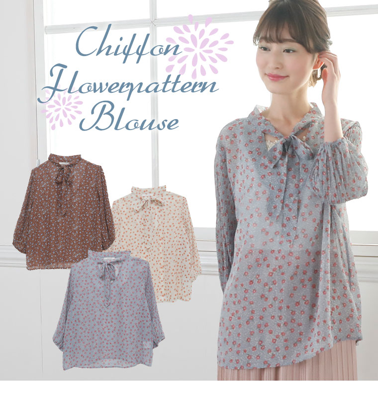 シフォン花柄ブラウス
