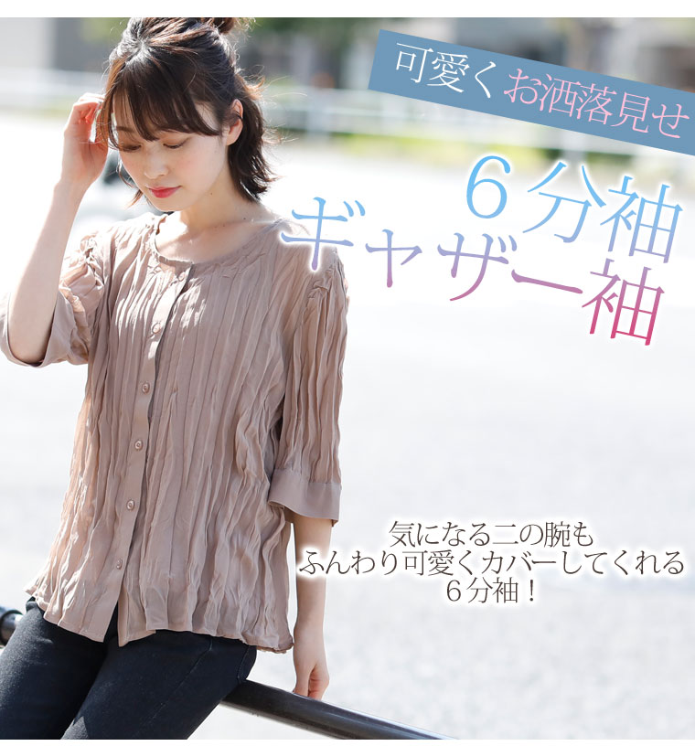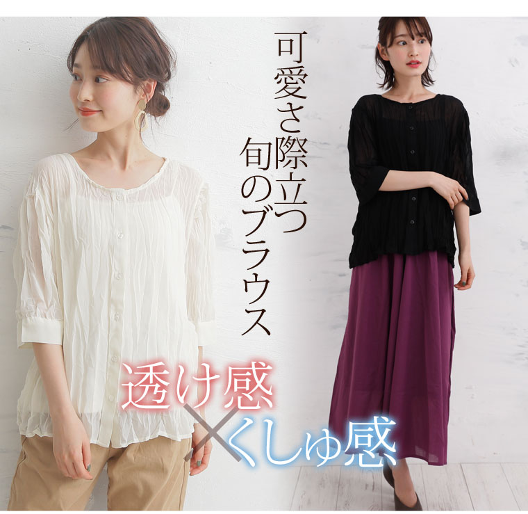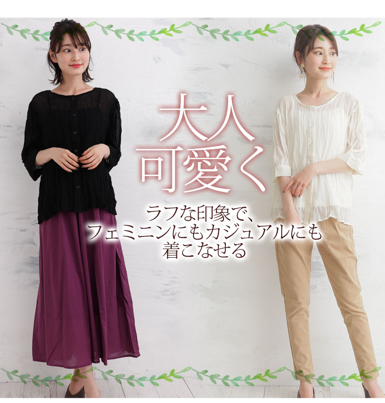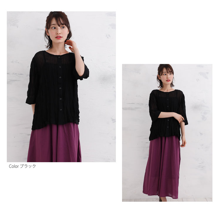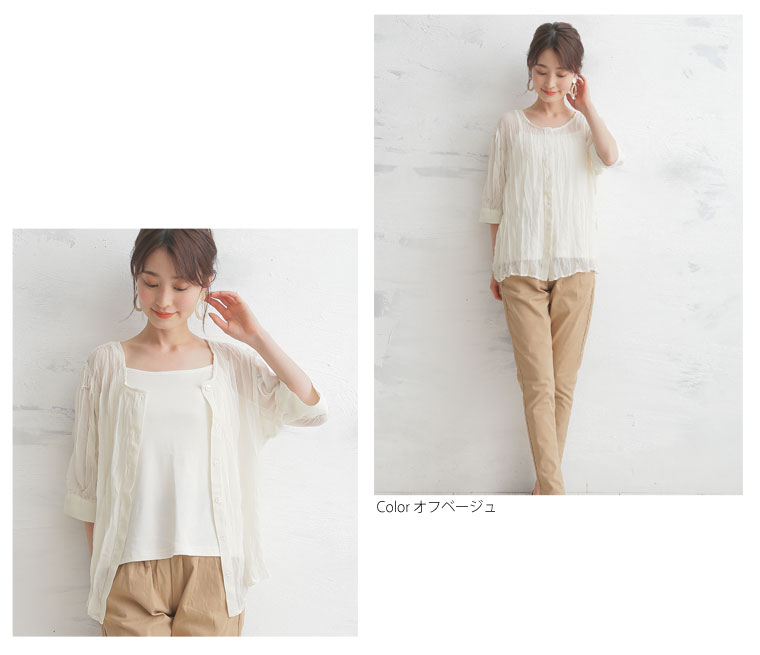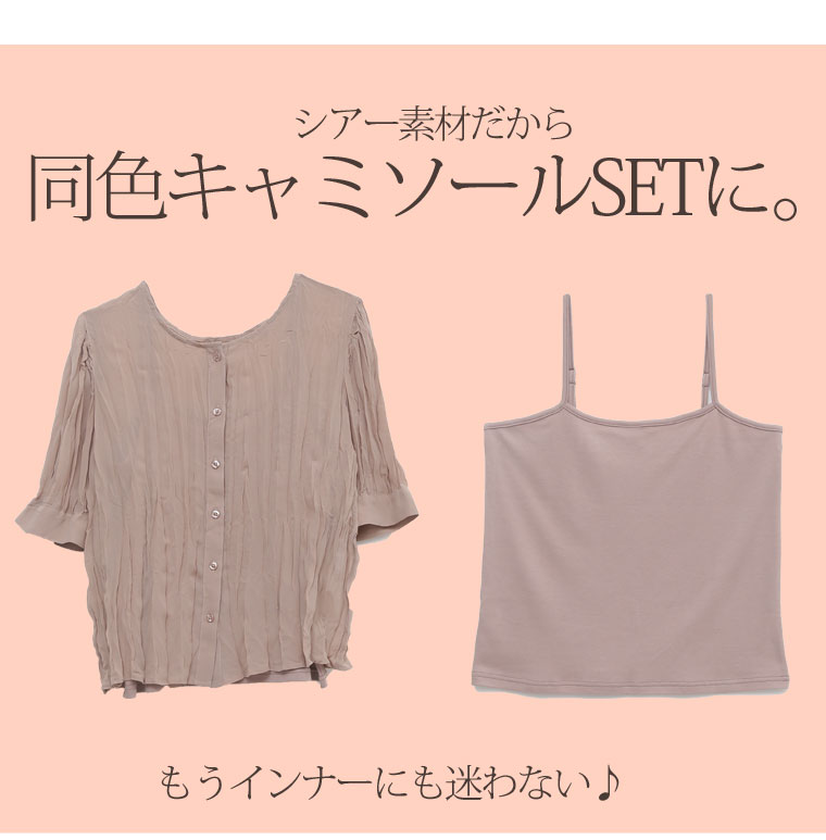 キャミソールセット♪シワ加工シフォン前後2way6分丈ブラウス