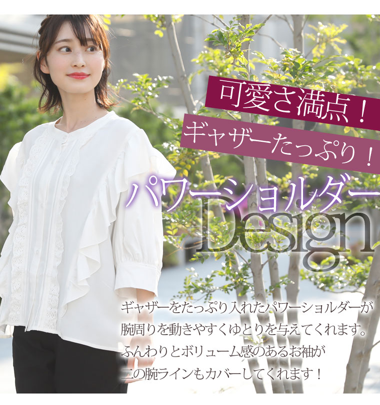 気のなる二の腕もしっかり隠してくれる五分袖パワーショルダー♪