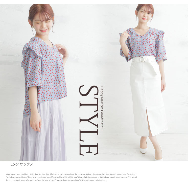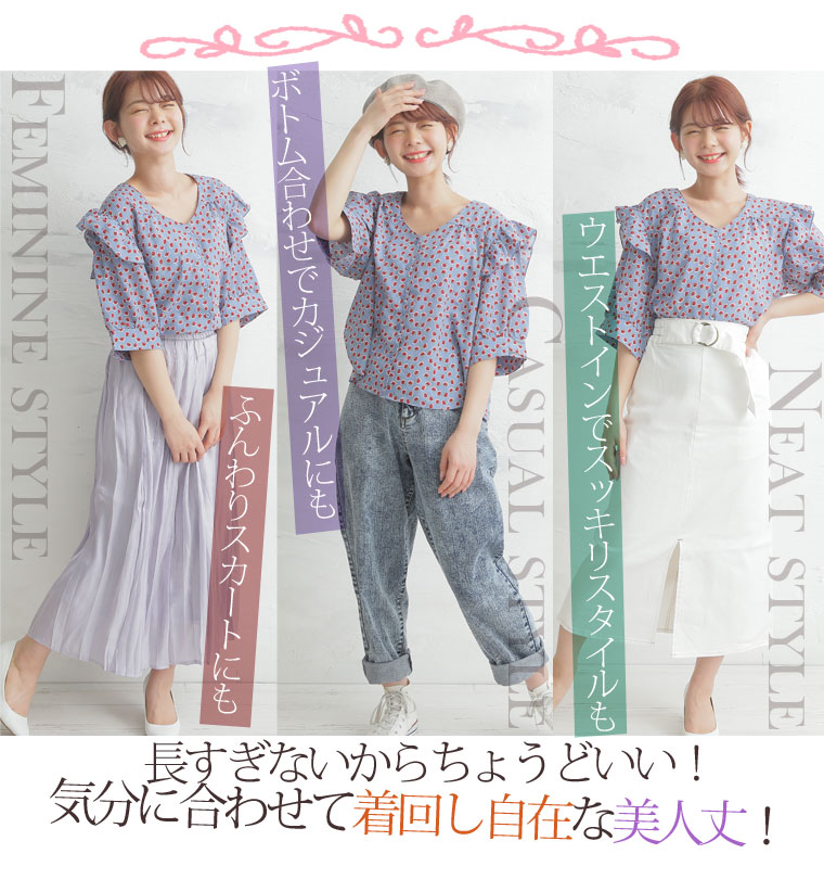 上品で女性らしいほの甘肩フリルで大人っぽく体型カバー!使いやすい裾丈でどんなボトムスでも相性◎