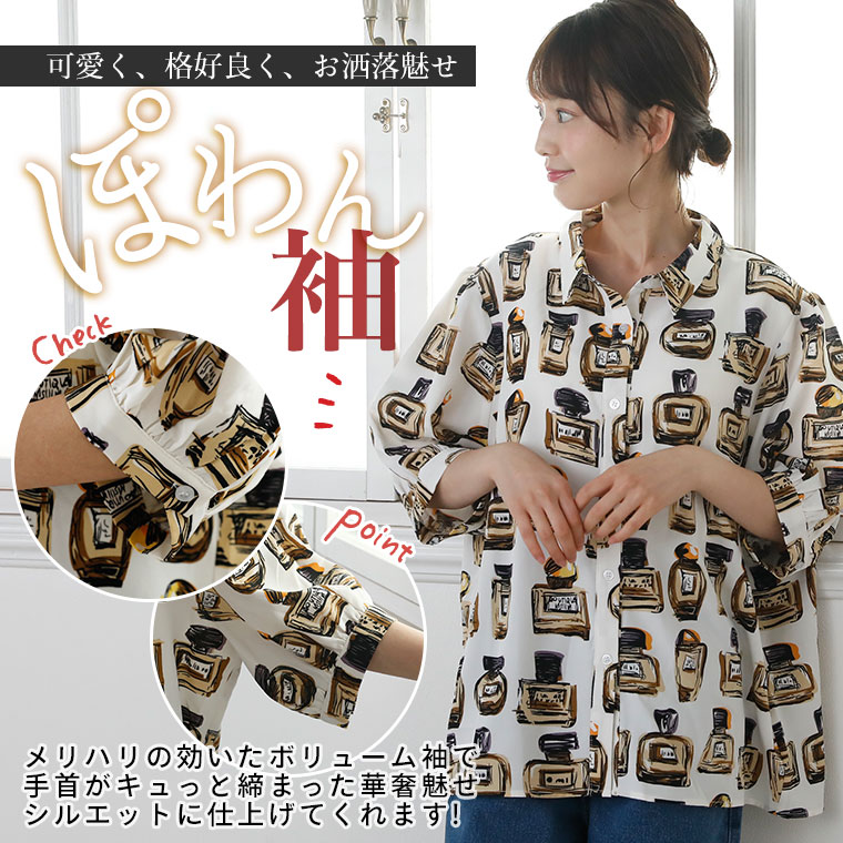 センスが光るレトロ柄が可愛い!ボリューム袖とAラインで細魅せもバッチリ