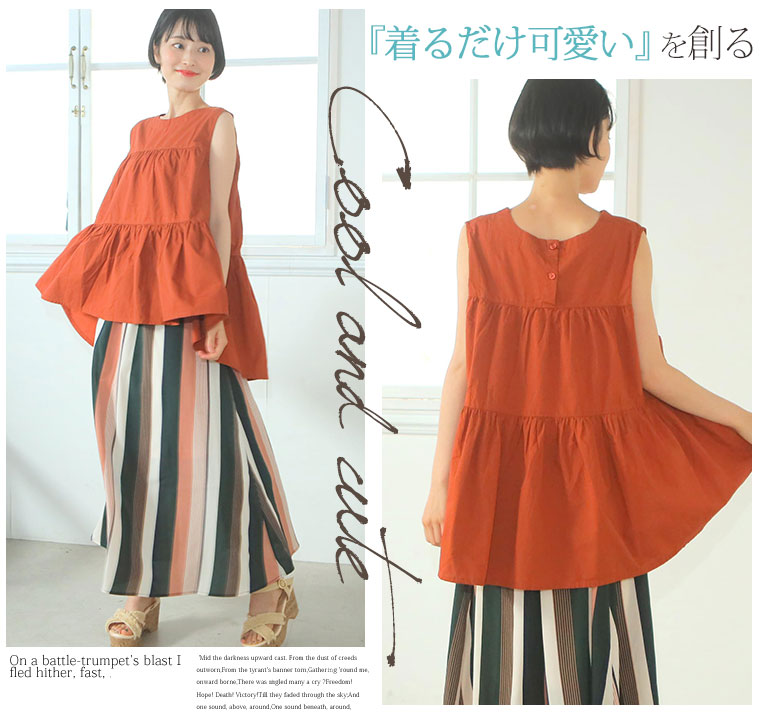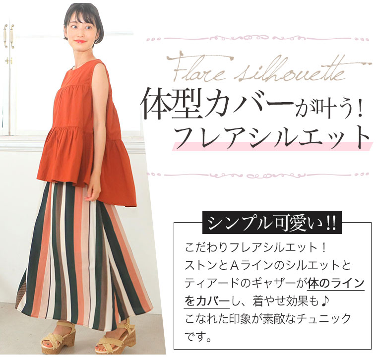 体型カバーができるフレアがかわいいティアードブラウス