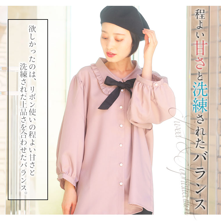 ほの甘フェミニンなのに、子供っぽくならない。リボンのオンオフ可能な優秀トップス