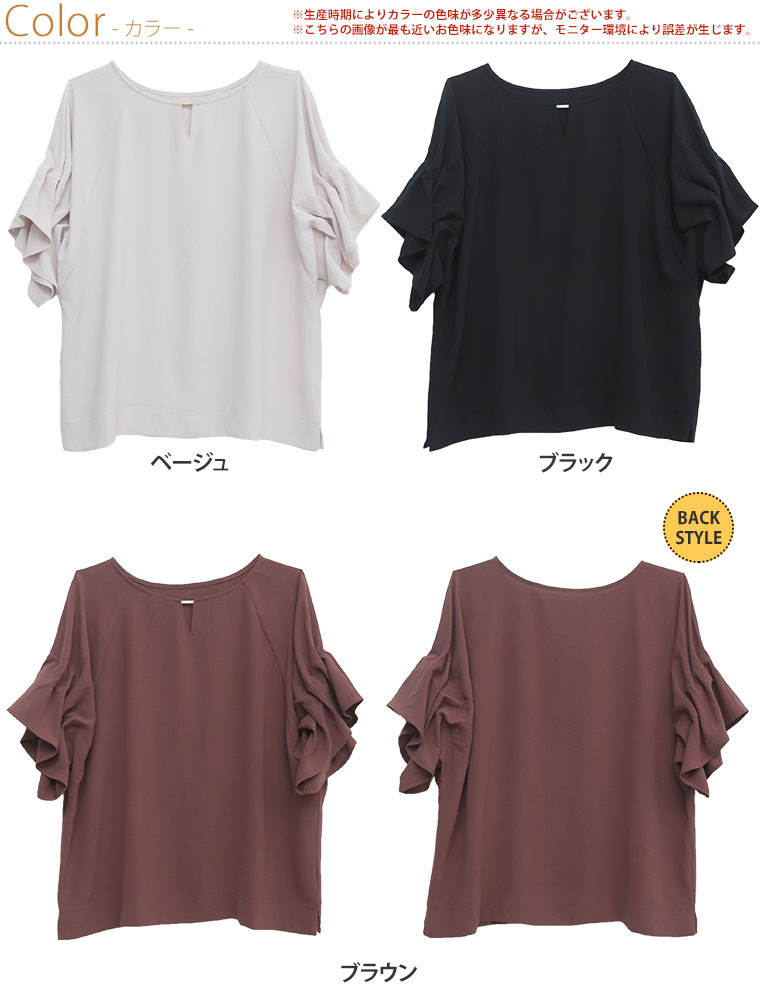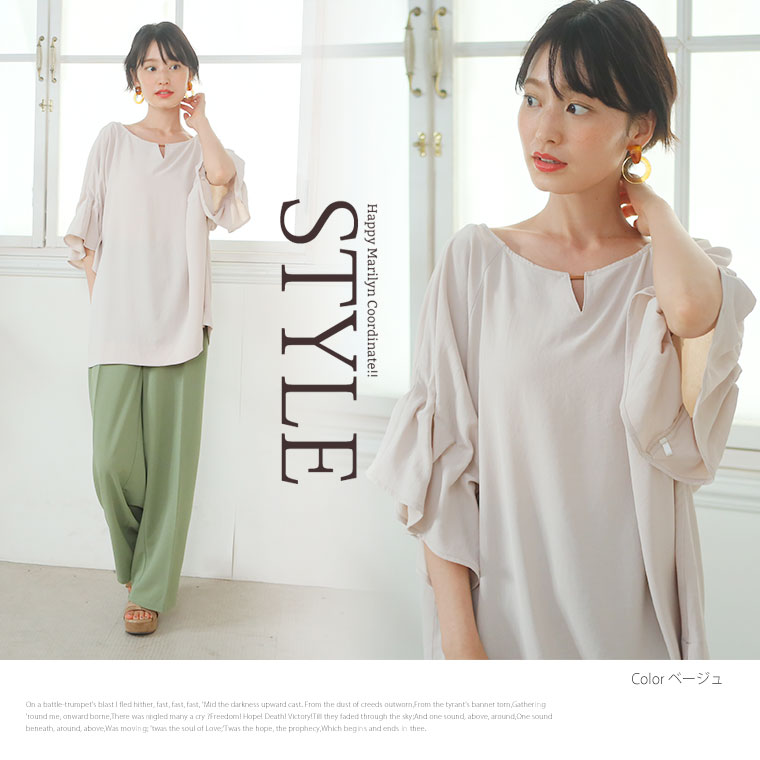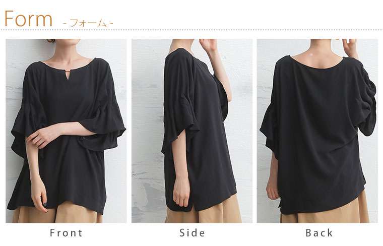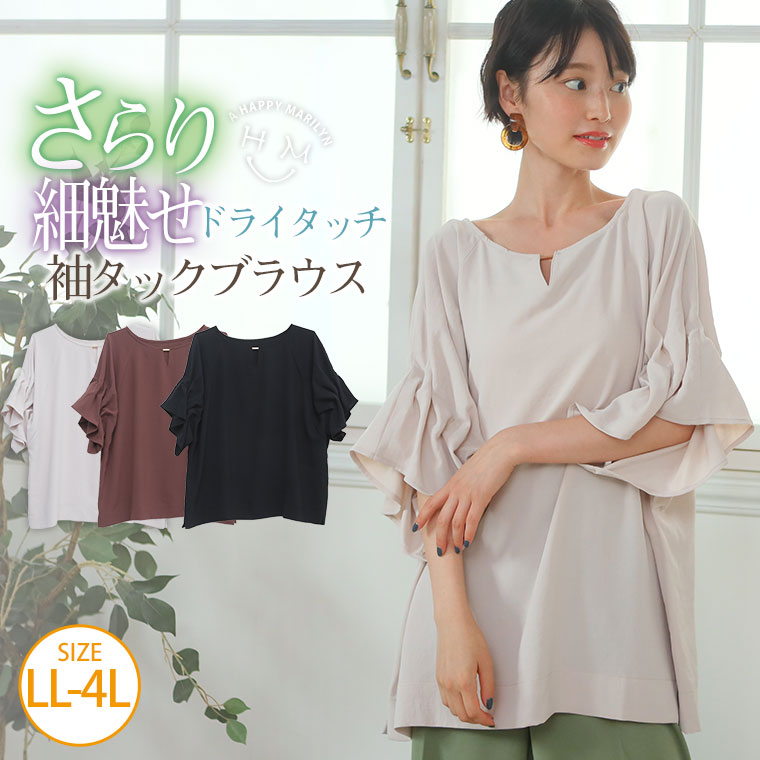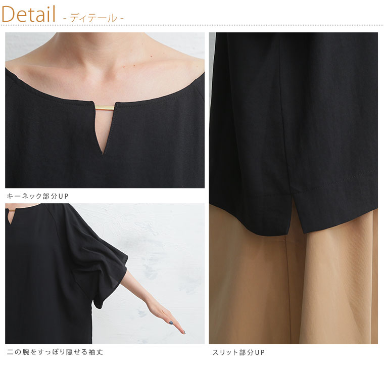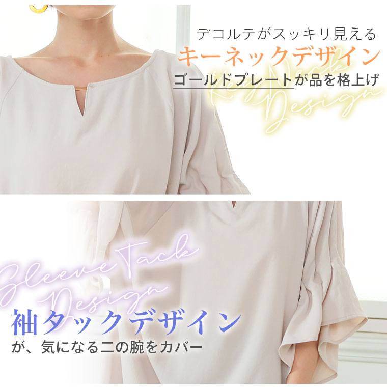 さらり細魅せ 袖タックが大人かわいいキーネックブラウス