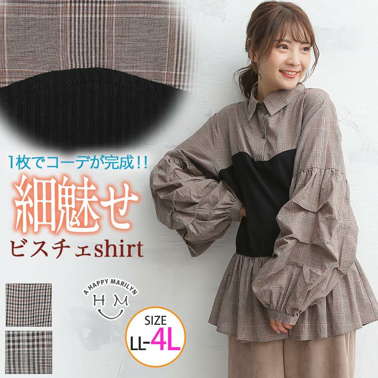 くびれ美人を作るこだわりの細魅せシルエット!フリルがかわいいチェックシャツ