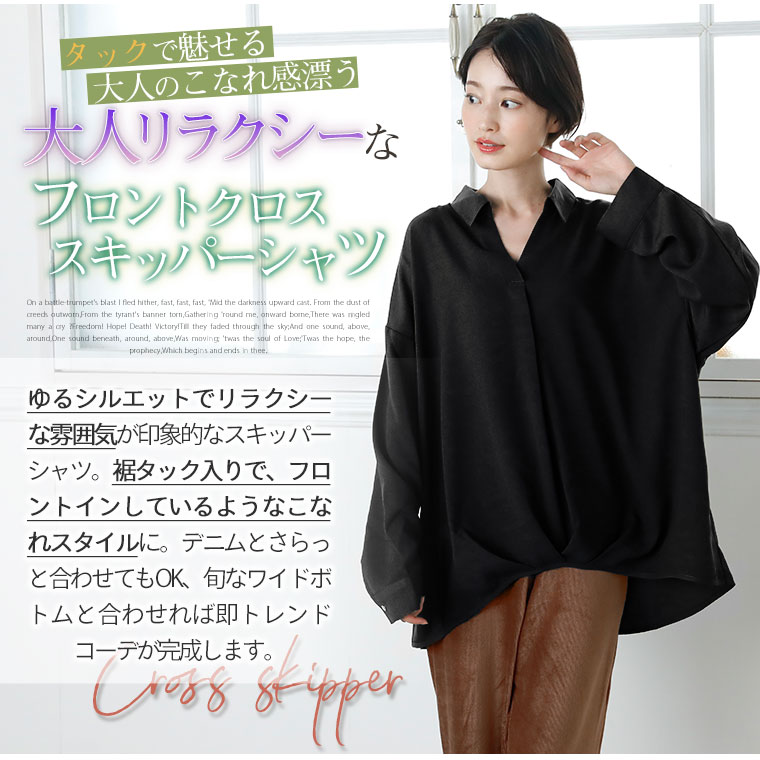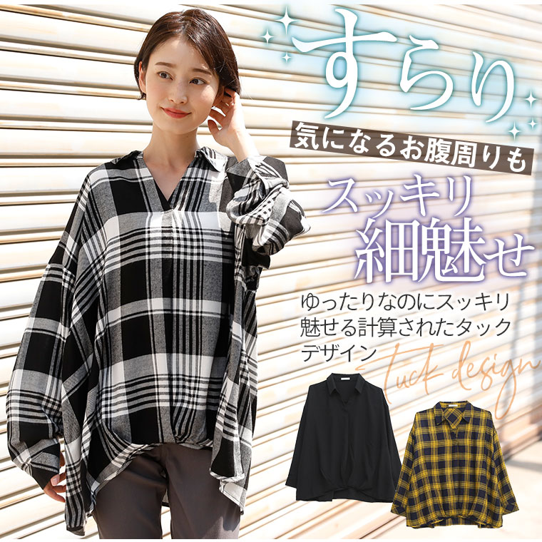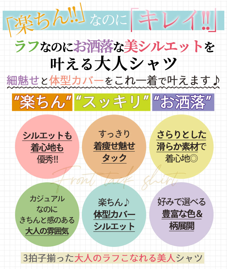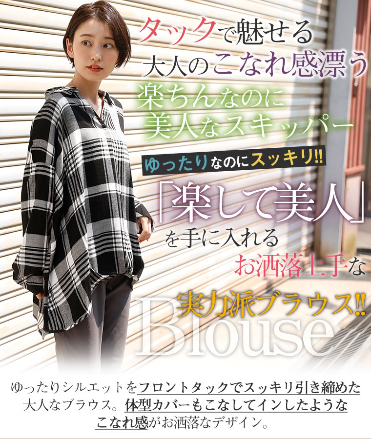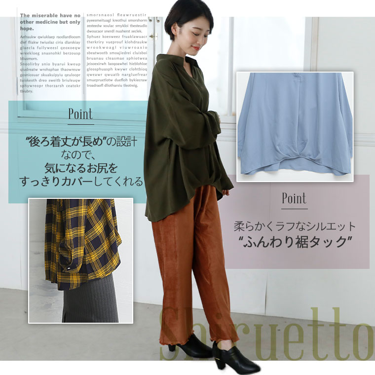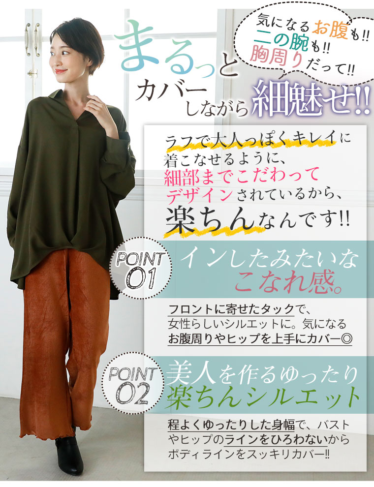 ゆったりなのにスッキリ!!選べる2素材フロントタックブラウス