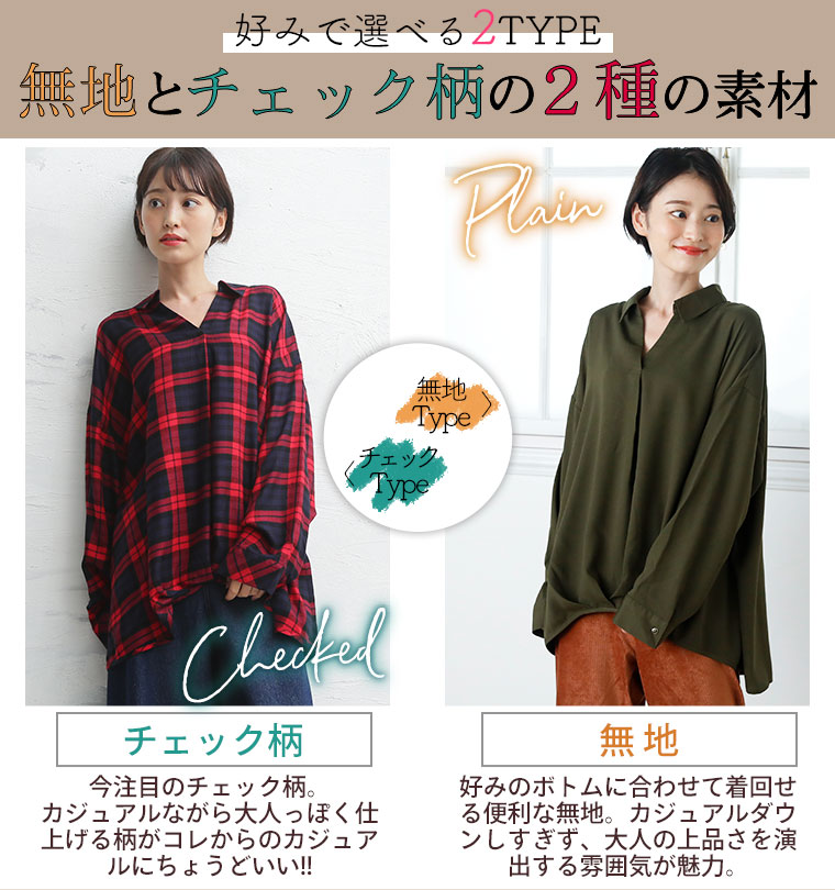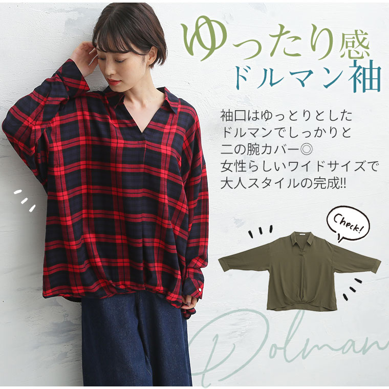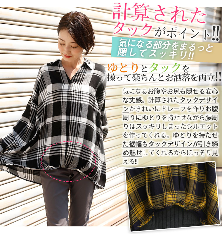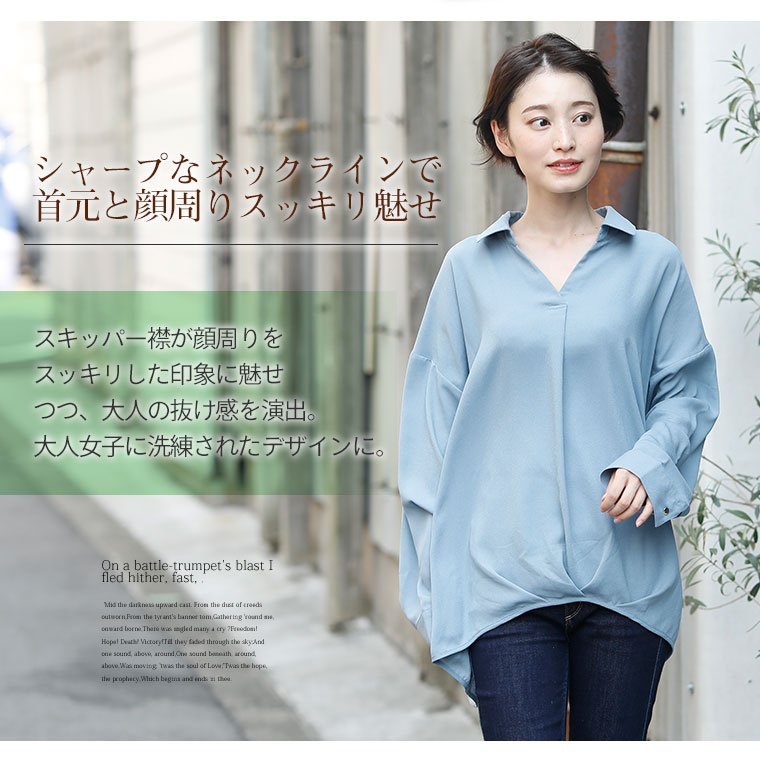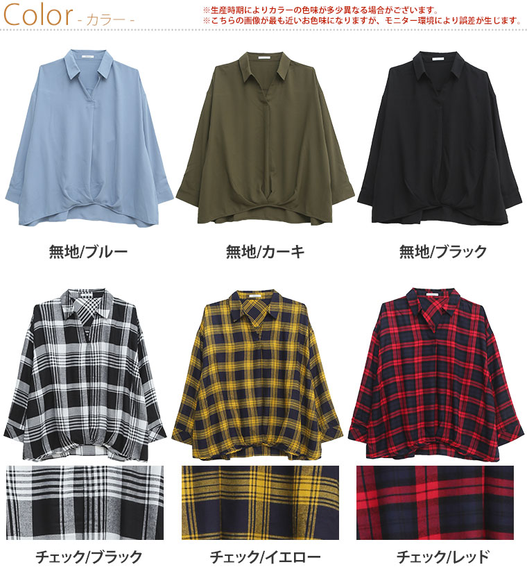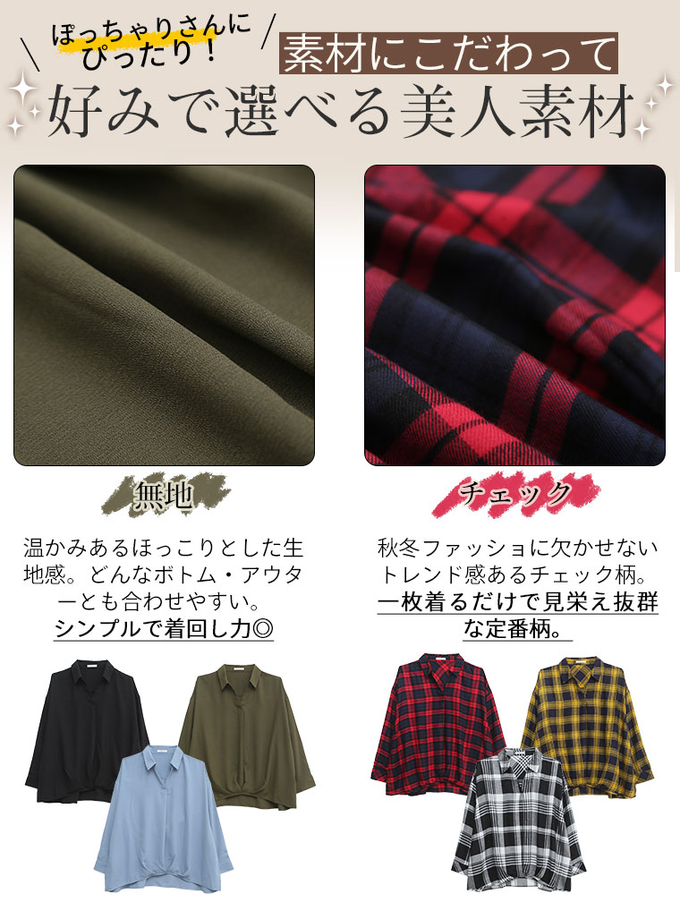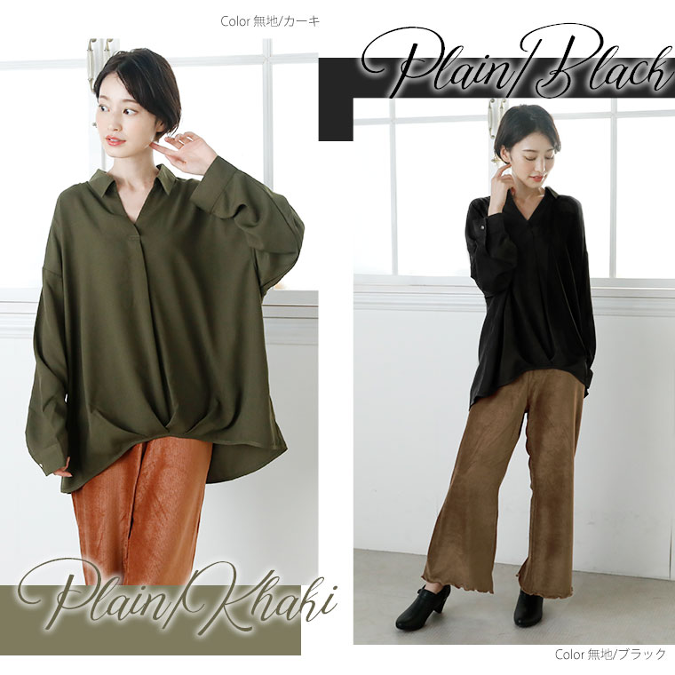 ゆったりなのにスッキリ!!選べる2素材フロントタックブラウス