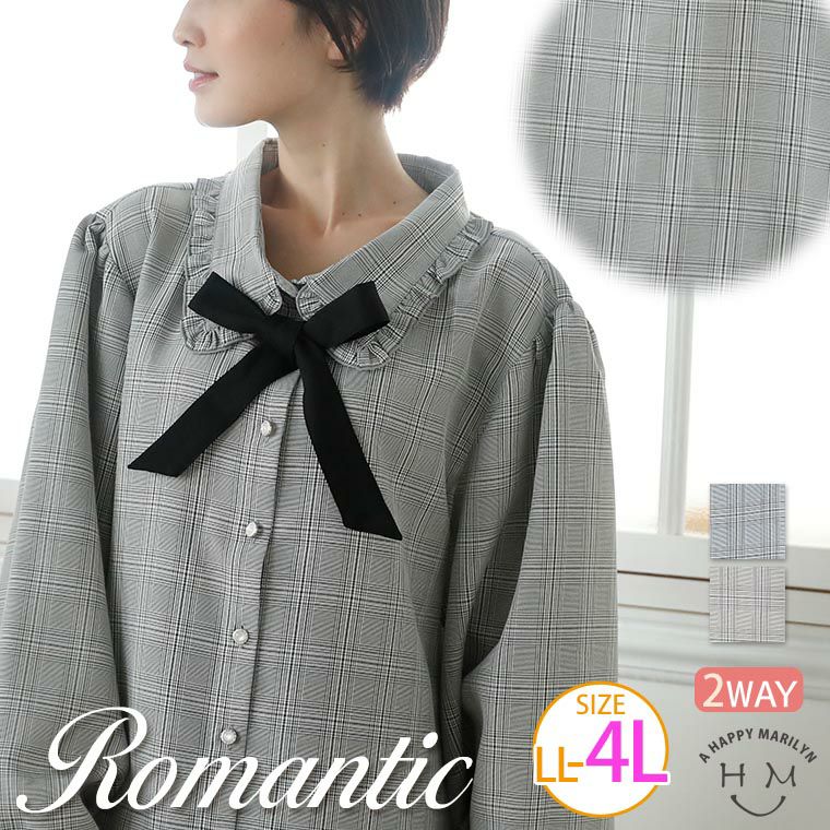 シャツ トップス LL 3L 4L 秋 秋物 秋冬 ぽっちゃり ゆったり かわいい おしゃれ カジュアル ナチュラル 2way リボンタイ付き フリルブラウス | 大きいサイズの通販ならハッピーマリリン