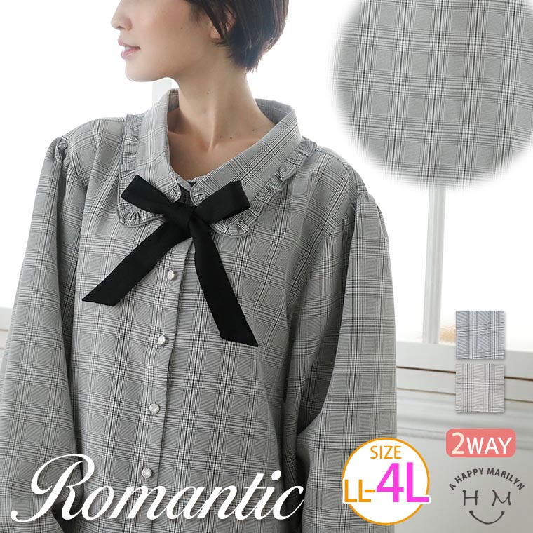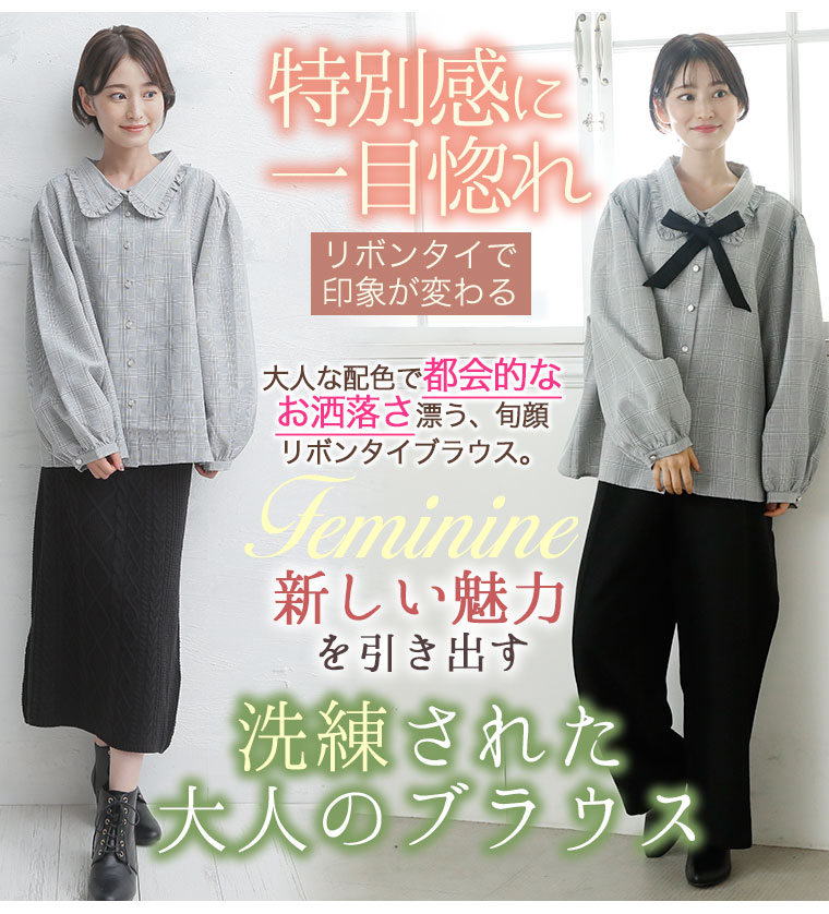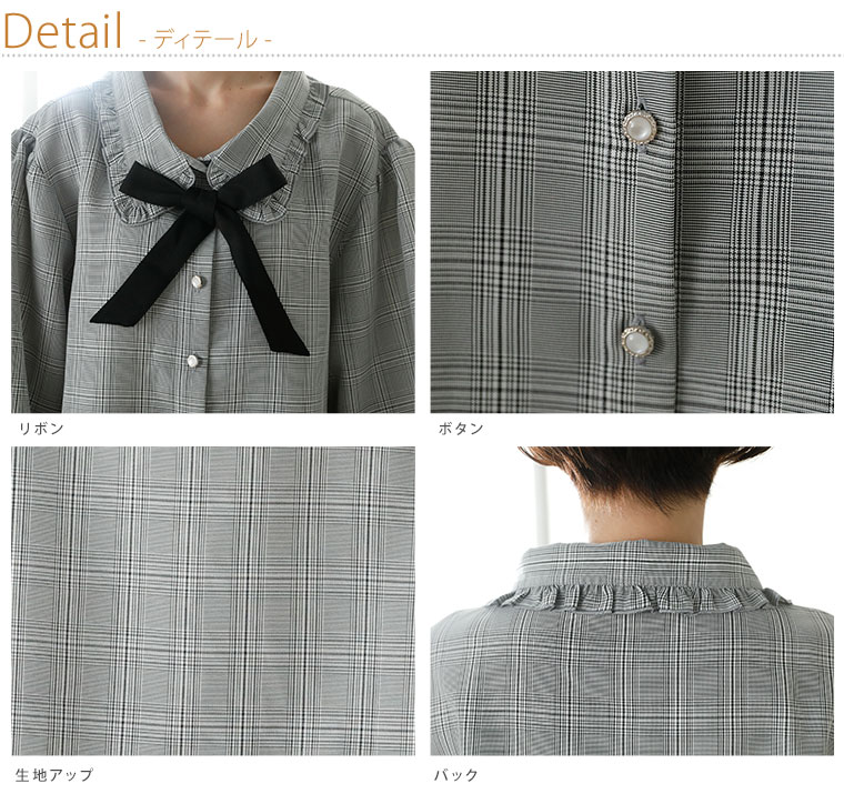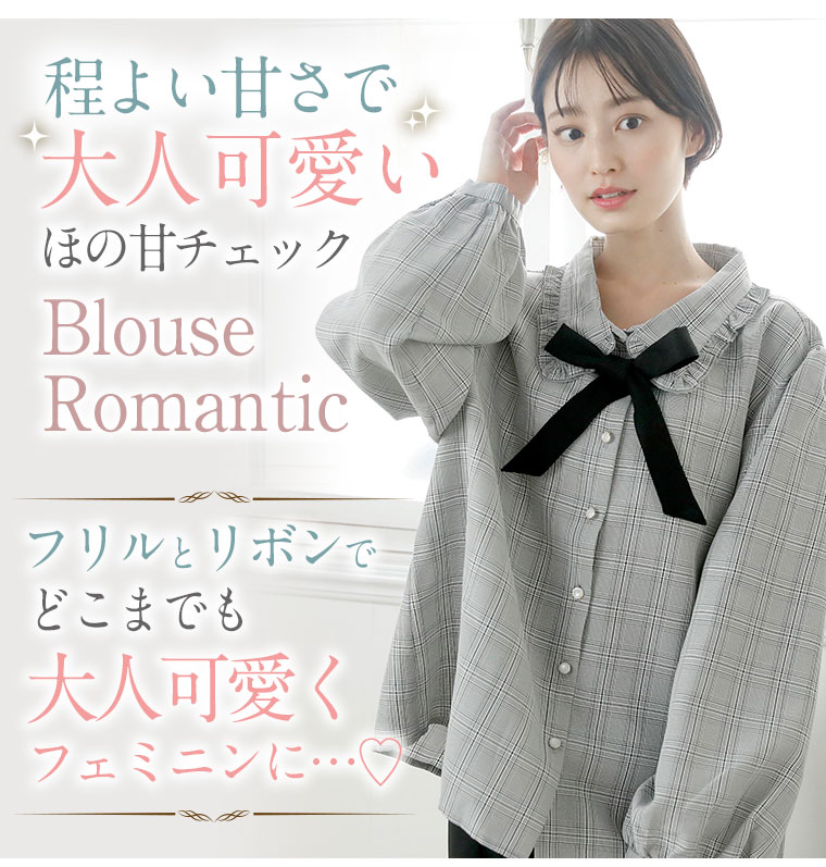 程よい甘さで大人可愛いチェックとフリル!リボンでフェミニンなロマンティックブラウス