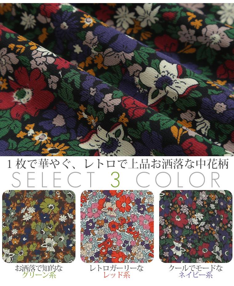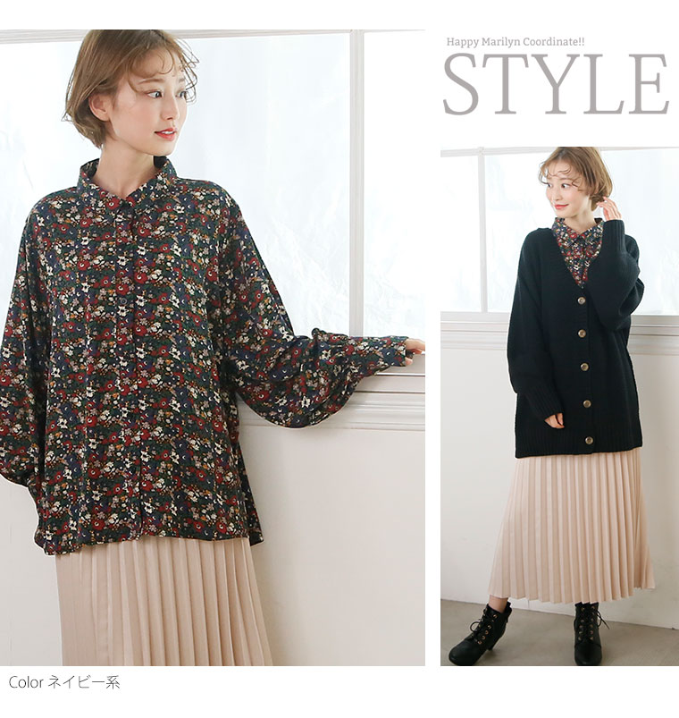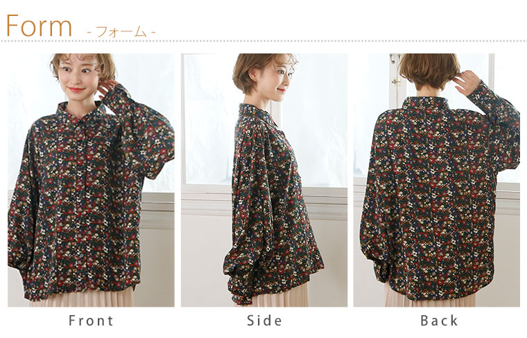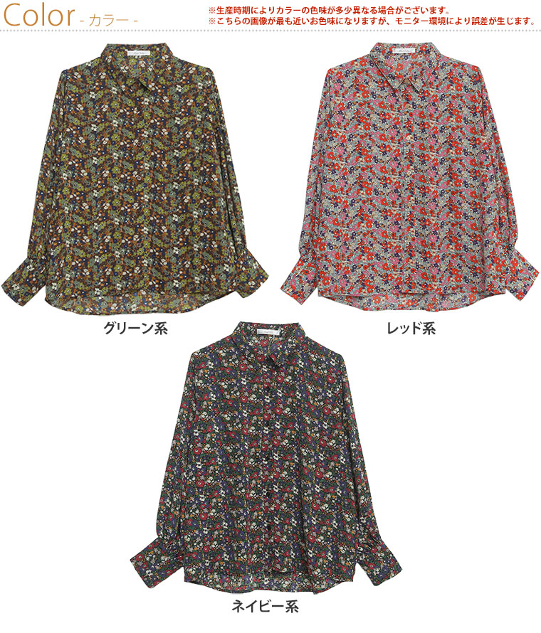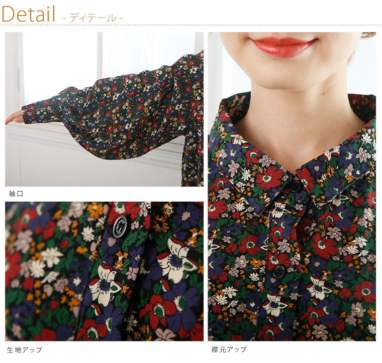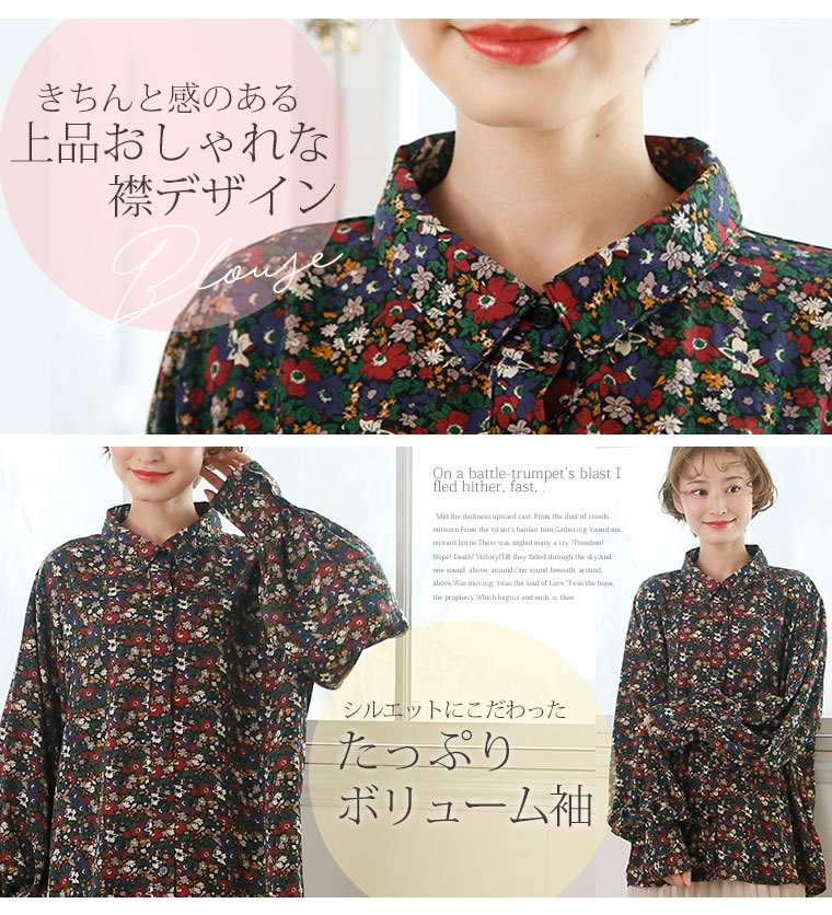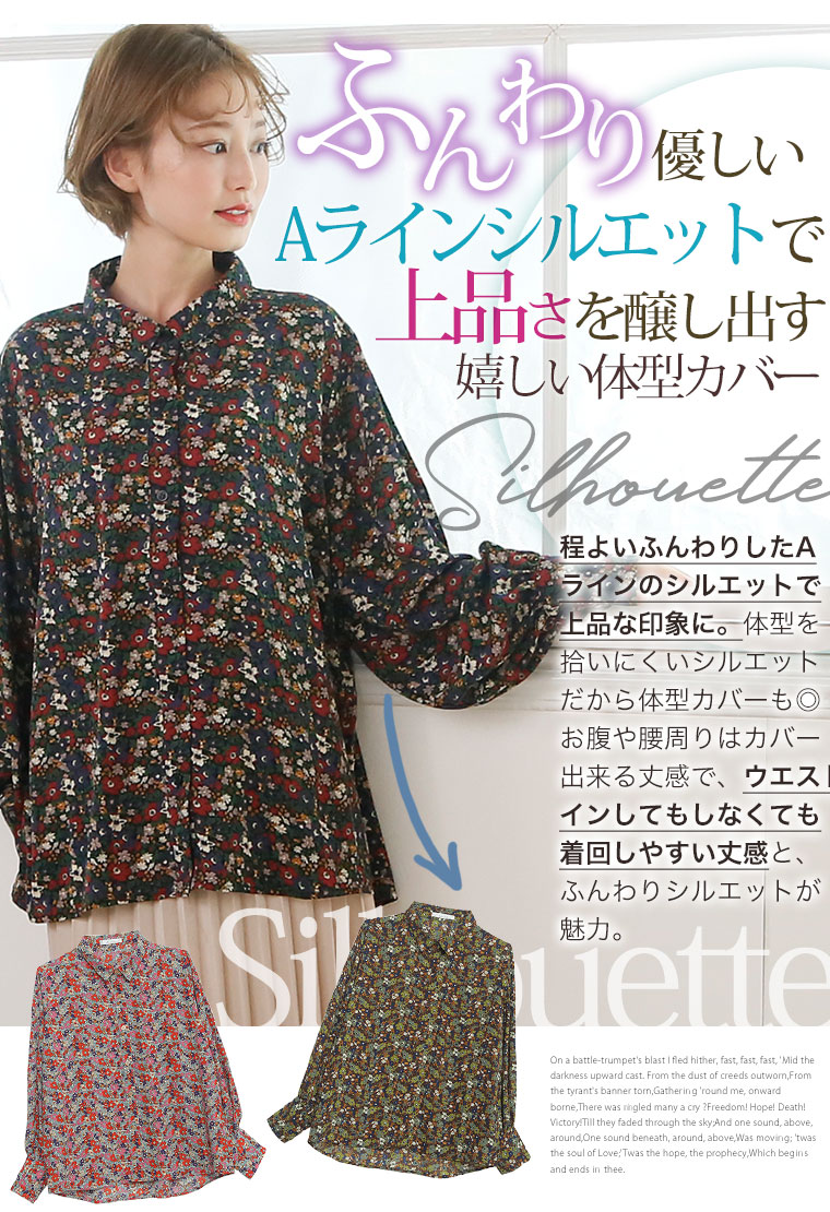 オリジナル ブラウス トップス LL 3L 4L 冬 冬物 冬服 ぽっちゃり ゆったり かわいい おしゃれ デシン リバティ柄 プリント ロングカフス シャツ OHS