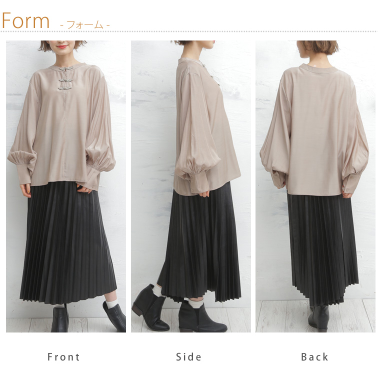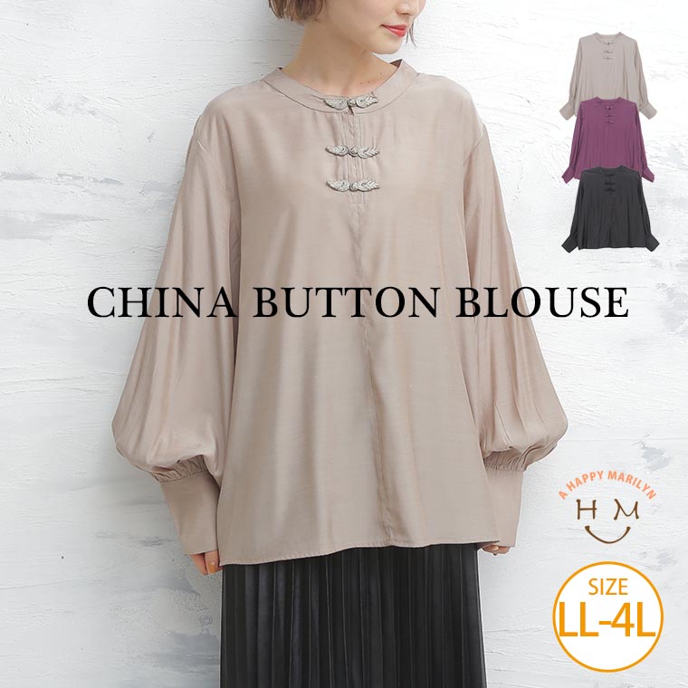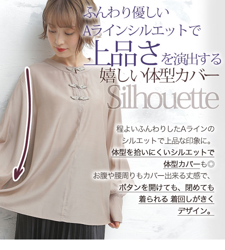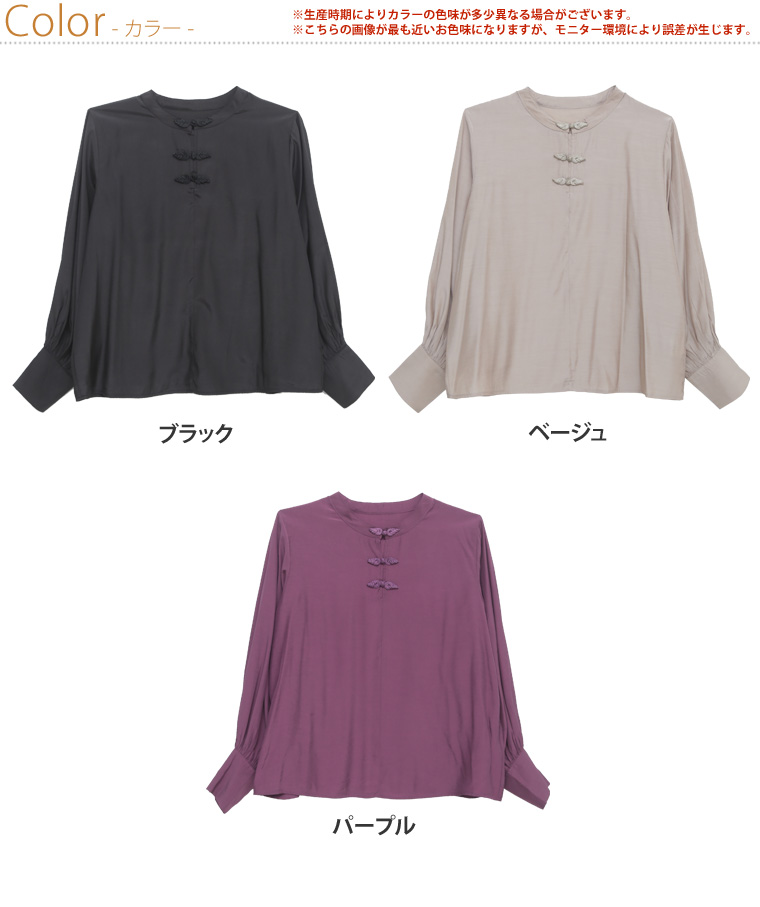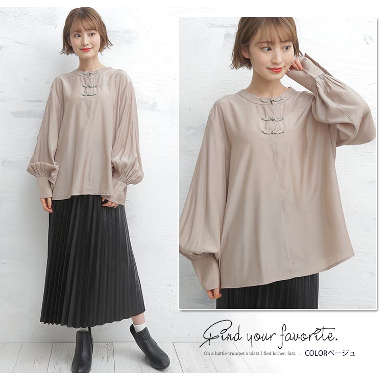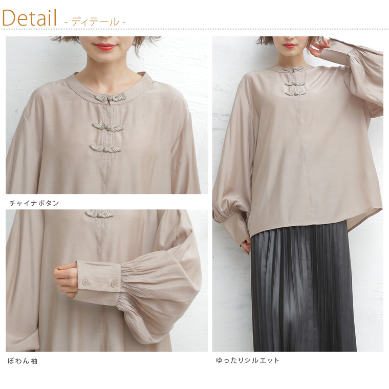 ボタンデザインが魅力的。サテンチャイナブラウス