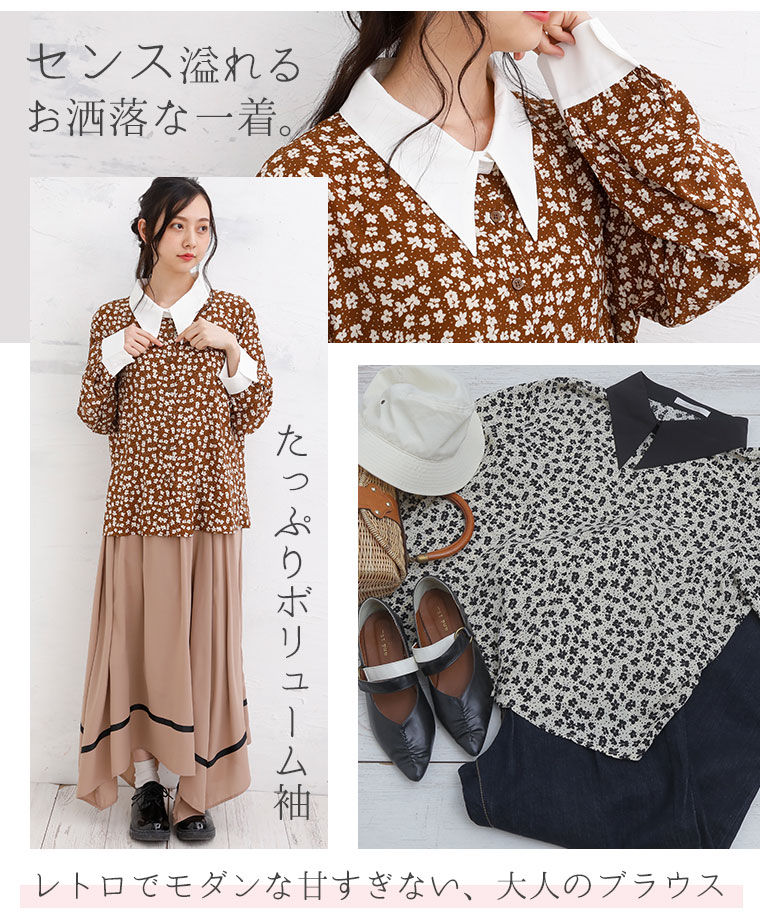 上品レトロな小花柄ブラウス