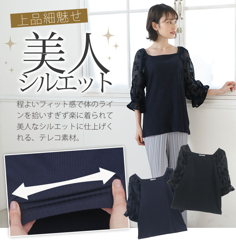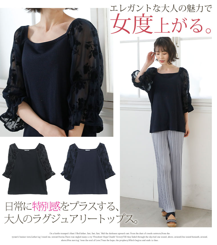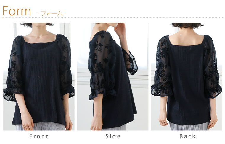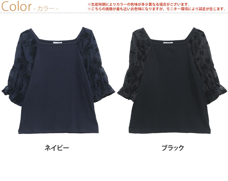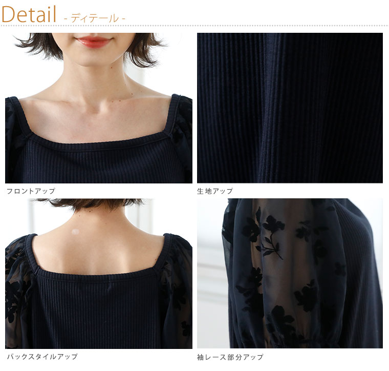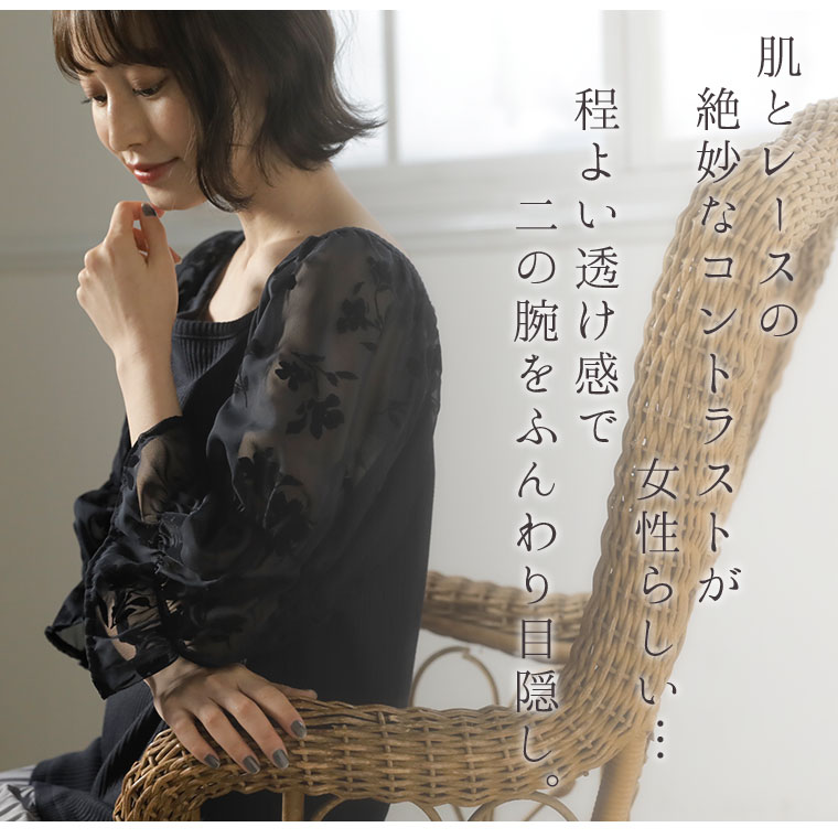 ふんわり花柄レースお袖のスクエアネックBlouse