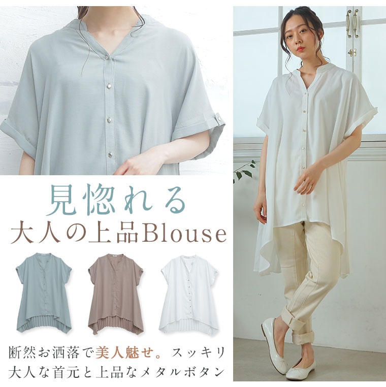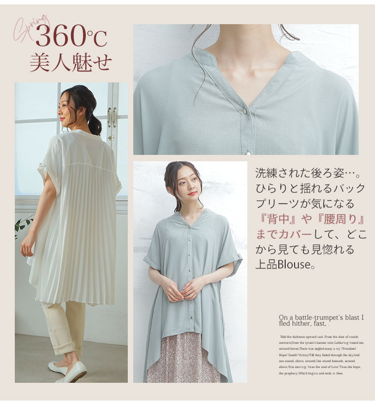 見惚れる大人の上品ブラウス。背中のプリーツが女性らしい