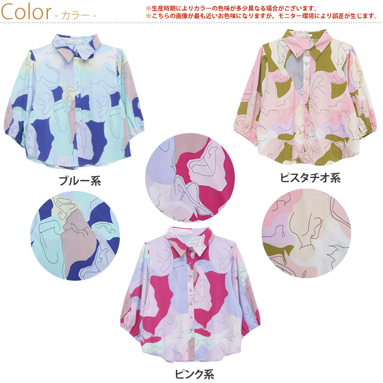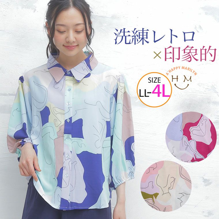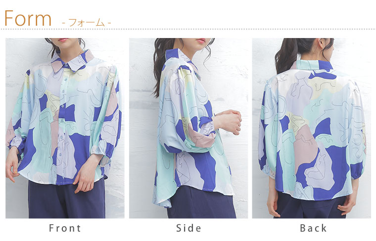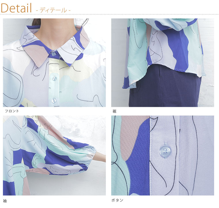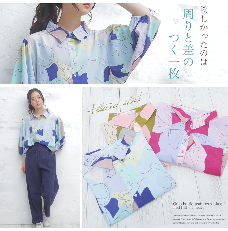 レトロな印象的なシャツ。体型を拾いにくいデザインで嬉しい体型カバー