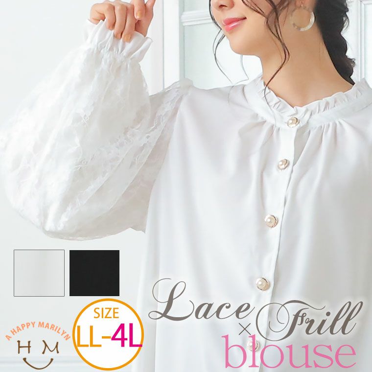 ジョーゼット×レースの袖切替デザイン プチハイブラウス