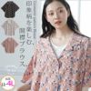 印象的な柄で魅せる開襟ブラウス。