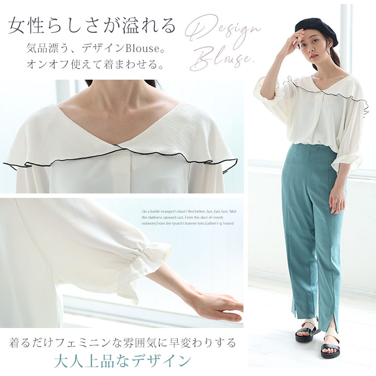 フェミニンな首元デザインで気品漂う優秀ブラウス