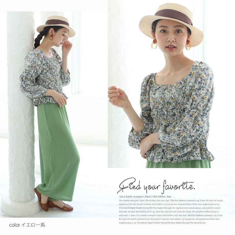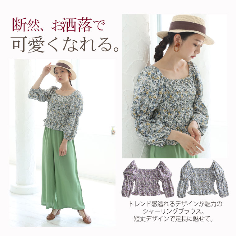 目を惹く上品デザイン。大人可愛いシャーリングトップス