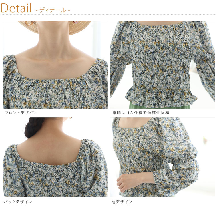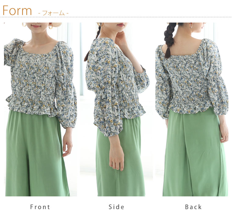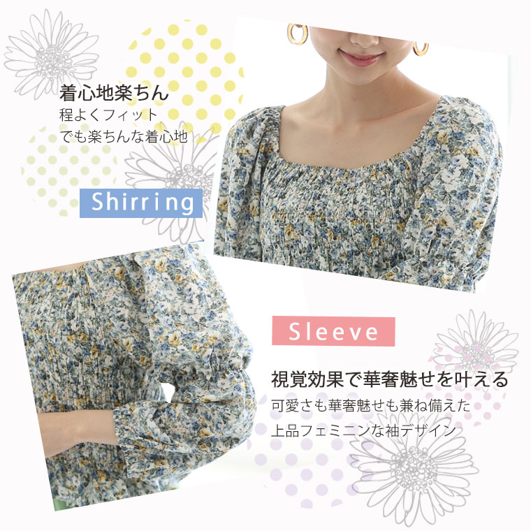 ふんわりスリーブ・シャーリングデザインで華奢魅せも