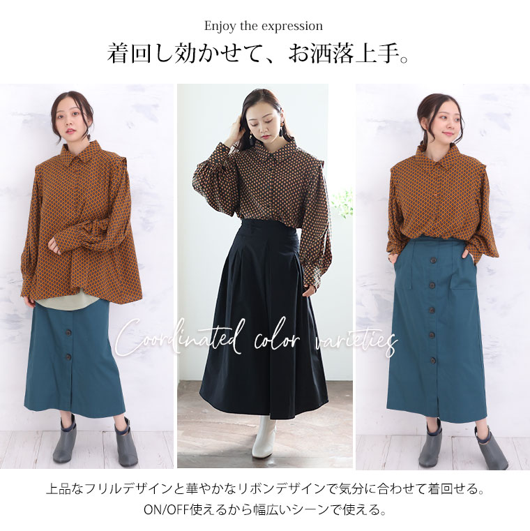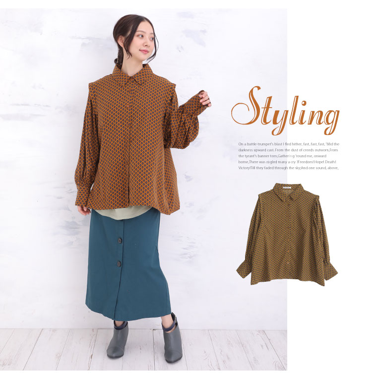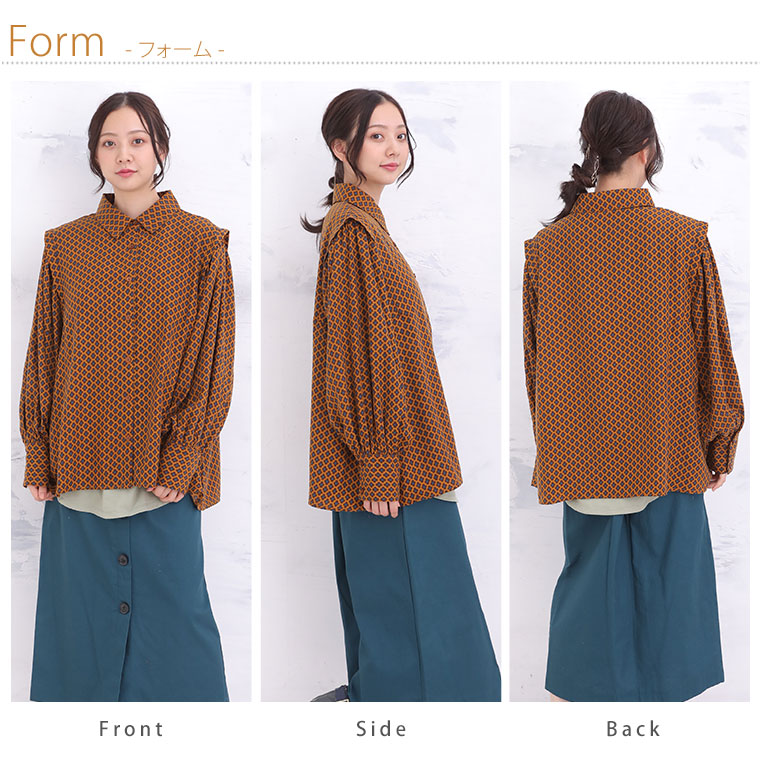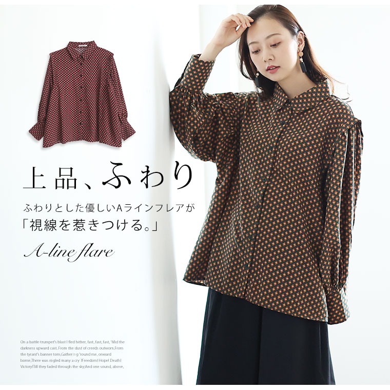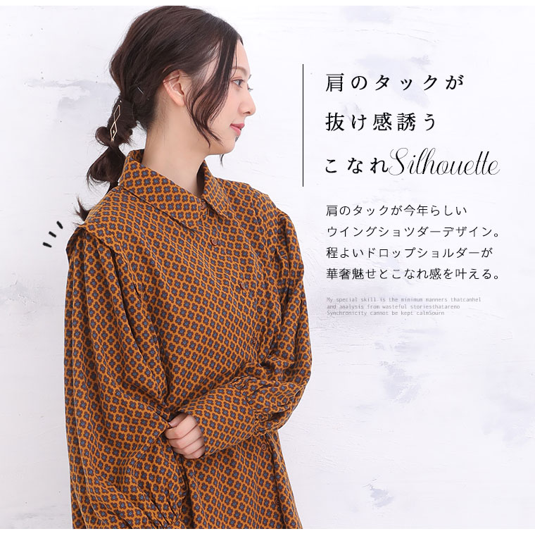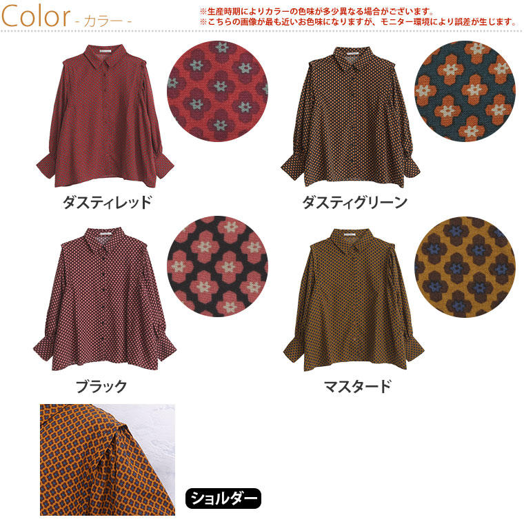 くすみカラーの花柄でレトロに魅せるギャザー袖ブラウス