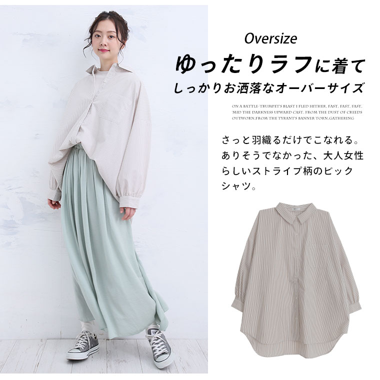 ゆったりラフに着れるストライプビックシャツ