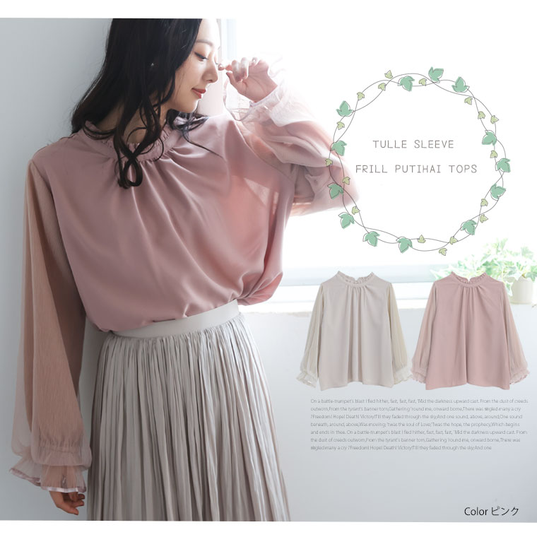 ぽわんっと可愛い チュール袖プチハイブラウス
